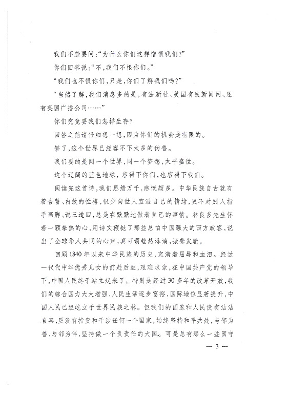莫管他人言堅走自己路 編者按:國家發改委離退休干部局《情況簡報》今年第11期刊載《莫管他人言堅走自己路——由〈你們究竟要我們怎樣生存?〉所想到的》,是一篇洋溢著愛國主義情懷的好詩文,現根據公司領導的指示予以轉載,請各支部作為黨史學習的生動教材,激發全體同志堅定永遠跟著黨走的決心,堅持走中國特色社會主義道路,為全面實現小康社會而努力奮斗。