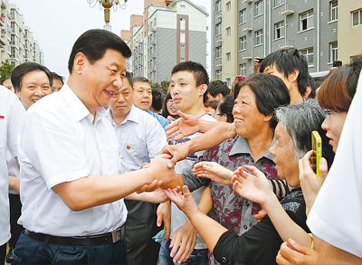 7月11日至12日,中共中央總書(shū)記、國(guó)家主席、中央軍委主席習(xí)近平在河北省調(diào)研指導(dǎo)黨的群眾路線教育實(shí)踐活動(dòng)。這是習(xí)近平看望正定縣塔元莊村村民并同他們親切握手。 新華社記者 鞠 鵬攝