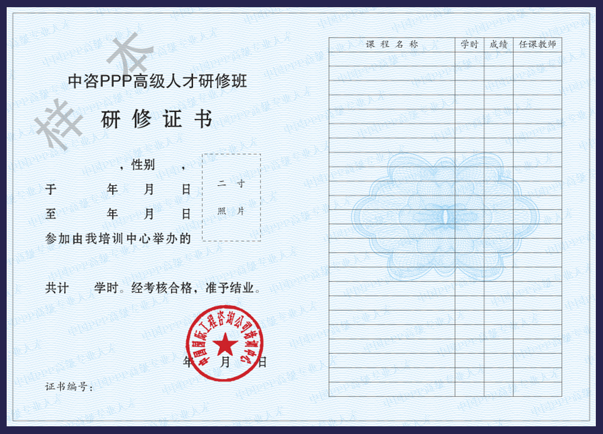 1、主題沙龍是整個課程體系的重要組成部分。在每期研修班的第一單元,安排一次主題沙龍,為學員提供與權威專家面對面交流探討PPP領域焦點問題的難得機會。學員在沙龍活動中可以發表自己對PPP相關問題的見解,也可以提出各自在項目操作實踐中遇到的棘手問題,獲得權威專家的面對面交流和及時解答。 2、沙龍安排在第一單元課程期間的晚間舉行,時間不少于3個小時。出席沙龍活動的專家由主辦方精心挑選和邀請,均為我國PPP領域最權威的著名專家。出席沙龍的權威專家原則上不少于3人。主辦方將提前向參加研修的學員征詢問題,學員也可以現場直接提問,權威專家將進行現場解答,采用多種方式與參訓學員進行互動交流。 1、促進PPP項目健康落地是主辦方舉辦該項研修班的核心目的,典型案例的推介和交流是整個課程體系的有機組成部分。在每期研修班的第二單元和第三單元,分別安排一次典型案例現場交流,主辦方邀請我國PPP領域權威專家對精選案例進行現場點評,結合具體案例剖析,加深學員對PPP項目落地存在各種問題的深刻理解,確保研修取得實效。 2、要求每位學員在自愿的前提下,按照統一要求的格式及內容深度,報送各自以不同方式參與的PPP項目案例。每位學員提交的推介交流PPP項目原則上不多于3個。主辦方將對學員提交的PPP項目案例材料進行歸納整理,編輯成冊,分送相關部門及參訓學員,利用多種有效渠道對學員報送的PPP典型案例項目進行推介。 3、主辦方組織專家,對各位學員上報的PPP項目進行評選,從每期學員上報的PPP項目中篩選12個項目,作為權威專家進行現場點評的重點項目。在第二單元和第三單元的案例點評中,每次點評將有6個項目成功入選,獲得權威專家親自點評的寶貴機會。 4、案例點評分別安排在第二單元和第三單元課程期間的晚間舉行,每次時間不少于3個小時。出席案例點評的專家由主辦方精心挑選和邀請,均為我國PPP領域最權威的著名專家。出席案例點評的權威專家原則上不少于3人。學員對入選項目分別進行現場介紹和展示,權威專家進行現場點評,結合具體案例進行互動交流,解答PPP項目落地可能遇到的各種現實問題。 A選項:7800元/人,選擇研修班一單元、二單元、三單元中的其中一個單元的學習,含授課費、講義費、場地費、文具費、證書費等,以及舉辦主體沙龍、開展項目推介或專家點評等各項支出。食宿統一安排,費用自理。 B選項:16800元/人,組團報名三人以上(含)9.5折、7人以上(含)8.5折。含三個單元12天3晚的授課費、講義費、場地費、文具費、證書費等,以及舉辦主體沙龍、開展項目推介及專家點評等各項支出。食宿統一安排,費用自理。 注:為了保證每位學員達到預期研修目的,組委會特別推出免費復訓政策,即凡報名B選項的參訓學員,截止2018年9月30日前,可免費參加《中咨PPP高級人才研修班》課程復訓。復訓期間的食宿統一安排,費用自理。 研修期間,學員將通過考勤、案例展示、沙龍活動及參與研討等方式完成學業。按要求完成學業的學員統一頒發“中咨PPP高級人才研修班”參訓研修證書。主辦方將通過確保研修品質等多種措施,提升證書的社會認知度及品牌價值。參訓學員請在報道期間向會務組提供個人2寸近期證件彩色照片,用于辦理證書時使用。 參訓學員將獲得以下多重收益: 1、首次獲得主辦方隆重推出的PPP完整課程體系高強度集中培訓,系統掌握PPP相關知識和技能; 2、及時掌握PPP領域最新政策及相關資訊,及時掌握我國PPP領域權威專家對當前PPP熱點問題、未來走向的權威解讀; 3、加入中國國際工程咨詢公司傾心打造的全國PPP高端人才學習平臺,全面提升個人職業生涯層次; 4、加入“中咨PPP高級人才”專業學習研修網絡,持續獲得各類培訓研討后續資源信息; 5、利用中咨公司專家網絡平臺,獲得與我國PPP領域權威專家面對面交流、研討及合作機會; 6、全面更新參訓學員的PPP知識結構,糾正錯誤理念,確保未來PPP項目推進不走彎路; 7、通過主題沙龍,深化交流合作,解決學員PPP實際操作環節面臨的各種棘手問題; 8、利用研修班所形成的平臺,推介參訓學員提交的PPP典型項目,樹立本單位品牌形象; 9、學員提交的入選優質項目,能夠獲得PPP權威專家的現場點評及推廣宣傳,拓展合作機會; 10、享受國家發展改革委順義培訓中心提供的高質量的會議服務,盡享自然,潛心治學,重整思路,蓄勢待發。 中國國際工程咨詢公司培訓中心組委會 組委會負責人:龐國慶手機:13910119919(龐) 組委會聯系人:羅瑞玲、楊桂芬、胡玉平電話:010-57712255/2266 傳真: 010-57712211/88 手機:18901288822(羅) 郵箱:pgq@zxec.cn 一單元 二單元 三單元