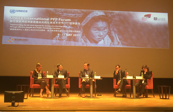 5月9-11日,聯合國歐洲經濟委員會(簡稱聯合國歐經會,UNECE)在香港城市大學成功召開第二屆PPP國際論壇,論壇主題為“通過以人為本及有效的PPP模式實踐聯合國2030年可持續發展議程”,內容包括“一帶一路”倡議與以人為本PPP、聯合國可持續發展目標(SDGs)框架下的PPP標準與指導原則、各國PPP典型案例分享、八個平行分論壇、香港PPP經驗及可持續和可恢復的城市等。論壇期間,中國國際工程咨詢公司(簡稱中咨公司)研究中心主任李開孟博士主持組織召開了城市軌道交通PPP模式平行論壇暨聯合國城市軌道交通PPP標準制定第二次專家組工作會議,并參與“尋找一帶一路倡議下的最佳PPP項目”及“可持續和可恢復的城市”兩個專題論壇的討論。來自歐洲、北美洲、南美洲、拉丁美洲、非洲、澳洲、亞洲的50多個國家和地區的政府部門、國際組織、工商企業、學術機構等260余名注冊代表參加了本次論壇;香港鳳凰網(www.ifeng.com)進行了視頻直播,超過7萬人次在線收看了論壇直播。 聯合國歐經會發起召開的PPP國際論壇,是聯合國系統針對PPP標準制定及研究交流的高層次專業論壇,受到世界各國政府官員、國際組織、專家學者及業界精英的高度關注。2016年3月30日至4月1日,聯合國首屆PPP論壇在瑞士日內瓦萬國宮聯合國歐洲總部召開,中咨公司研究中心主任李開孟博士和教授級高工徐成彬向與會代表介紹了中國城市軌道交通PPP發展現狀和規劃以及PPP成功實踐案例,并申請制定城市軌道交通PPP國際標準。香港城市大學商學院提出并成功申辦了第二屆PPP論壇。 在本次PPP國際論壇開幕式上,聯合國歐經會國際合作與綜合司副司長兼PPP中心主任杰夫瑞•漢密爾頓(Geoffrey Hamilton)、香港城市大學校長郭位(Way Kuo)分別代表論壇主辦方致開幕詞。出席論壇的嘉賓還有:中國中央政府駐香港聯絡辦副主任譚鐵牛、第十二屆全國政協常委兼世界貿易中心協會終身榮譽主席團成員伍淑清(Annie Wu)、香港特別行政區“一帶一路”專員蔡榮璧(Yvonne Choi)、亞洲基礎設施投資銀行副行長丹尼·亞歷山大(Danny Alexander)、世界銀行基礎設施融資高級專家馬克·吉布樂特(Mark Giblett)、聯合國歐經委PPP專家委員會主席亞特·史密斯(Art Smith)、聯合國歐經委PPP商業顧問委員會主席詹姆斯·斯圖爾特(James Stewart)等。 圖1 聯合國歐經會國際合作與綜合司副司長兼PPP中心主任杰夫瑞•漢密爾頓(Geoffrey Hamilton)致開幕詞 在清華大學PPP研究中心共同主任王天義主持的“尋找‘一帶一路’倡議中的最佳PPP項目”(Seeking the Best PPP Projects for the OBOR Initiative)為主題的平行論壇中,中咨公司研究中心主任李開孟博士應邀出席該主題的辯論交流。李開孟博士認為,國際社會討論“一帶一路”倡議下的最佳PPP項目,需要厘清三個核心問題,即我們需要什么樣的PPP項目、為什么需要這些項目和如何尋找這些PPP項目,并闡述了關于三代PPP劃分的思想。李開孟博士指出,英國PFI代表現代PPP核心理念的形成,并產生第一代PPP;以中國為代表的發展中國家,吸收法國特許經營理念和PFI理念,進行吸收創新,正在創造第二代PPP,并作為經濟發展的工具;聯合國倡導的以人為本PPP屬于第三代PPP,主要特征是追求人的發展以及資源環境社會的和諧和可持續性。歐洲創造了第一代PPP的概念和核心理念,中國目前正在主導實踐第二代PPP,聯合國正引導向第三代PPP過渡,而且中國是積極的推動者和參與者。 圖2 中咨公司研究中心主任李開孟博士(左起第五)在“尋找‘一帶一路’倡議中的最佳PPP項目”平行論壇中,闡述三代PPP劃分的思想 李開孟博士的觀點受到了與會專家的廣泛支持和贊同,開幕式當天應約接受了英國《BBC世界新聞》制片人兼主播Sharanjit Leyl記者的訪談,進一步闡述了“一帶一路”倡議下的中國PPP發展前景和中國企業境外投資項目遵循社會環境標準、履行國際義務等方面的政策規定及實踐情況。 圖3 英國《BBC世界新聞》制片人兼主播Sharanjit Leyl(中間)與中咨公司研究中心李開孟主任和徐成彬處長合影 本次論壇的最后一項辯論活動聚焦到“可持續與可恢復的城市”(Sustainable and Resilient Cities)這個主題,由聯合國歐經會PPP高級咨詢顧問斯科特·瓦爾查克(Scott Walchak)主持,中咨公司研究中心主任李開孟再次應邀出席該主題的辯論交流。李開孟博士結合中國PPP發展現狀,展望了可持續與可恢復的城市的未來實踐方向。根據中國投資項目在線審批和監管平臺的統計數據,中國傳統基礎設施領域入庫的PPP項目數量已經達到15966個,其中市政污水處理、垃圾處理、海綿城市、城市地下綜合管廊、城市停車場等重大市政工程領域PPP項目達8838個,占PPP入庫項目數量的55%。李開孟博士指出,雖然經濟類基礎設施PPP項目對于城市可持續發展發揮著重要作用,但PPP并不是萬能的鑰匙,不能將PPP的功能泛化,PPP模式不能完全代替政府職能和市場機制,可持續與可恢復的城市建設需要充分發揮政府公共投資的基礎性作用和企業投資的市場機制優勢。 圖4 中咨公司研究中心主任李開孟博士(左起第二)在“可持續與可恢復的城市”平行論壇中,闡述中國城市可持續發展的現狀與趨勢 本次香港PPP論壇專門設立城市軌道交通PPP平行論壇暨聯合國歐經會城市軌道交通PPP標準制定第二次專家組工作會議。作為聯合國歐經會城市軌道交通PPP國際標準制定專家組組長,中咨公司研