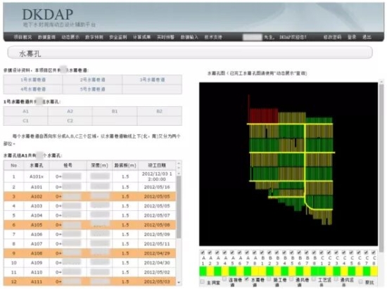【摘要】地下水封儲庫數字平臺建設的核心理念是信息即時化、數據生命化、反饋聯動化,建立全生命周期數字平臺具有十分重要意義。數字平臺架構包括底層工程數據庫、中層WEB服務器和通訊服務器、上層架構為網絡前端界面開發。此外,還簡述了國內某大型地下水封儲庫全生命周期數字平臺在工程中的實際應用情況,旨在為地下水封儲庫數字平臺建設提供參考。 關鍵詞:地下水封儲庫;全生命周期;數字平臺 地下水封儲庫通常是在花崗巖內開挖密集洞室群來儲存油品或液態氣體等能源,并利用地下水及人工水幕系統來防止儲物逃逸[1],因此對工程地質及水文地質條件要求極高。在地下水封儲庫建設全生命周期內,能夠將工程信息及時準確傳遞給各參與方,使其充分協調快速做出響應部署是至關重要的。鑒于地下水封儲庫工程的特殊性,能將有限的信息及數據得到合理的最大化利用,為工程提供輔助決策依據,也對保障工程順利建設及運營具有重要意義。 01 地下水封儲庫的原理及其特征 地下水封儲庫的原理如圖 1所示。 圖1 地下水封儲庫運行原理圖 與傳統的水電站地下廠房或交通隧道等地下工程相比,地下水封儲庫具有如下特點: (1)要求盡可能少的布置勘探孔以避免破壞水封系統,故前期勘探精度并不如其他地下工程精確[2]; (2)為保證地下水水位,要求保水施工,不能對巖體裂隙水有較大擾動[3]; (3)洞室密集、施工工作面多、工種復雜、施工進度快、工程參與方多,對整體快速協調及調度要求高[4]; (4)儲庫運行期只有管道進出儲物,其余進出口全部封閉,庫內一旦出現問題不具備維護條件,所以對洞室及圍巖的長期安全性要求極為嚴格[5]。 02 地下水封儲庫全生命周期數據平臺建設的核心理念 目前我國地下水封儲庫的設計建設總體還處于探索階段,由于地下水封儲庫不同于傳統的地下工程,具有其特殊性,且由于國外技術封鎖,核心經驗難以借鑒,給地下水封儲庫的建設帶來了阻力。根據地下水封儲庫的特點,在工程勘探、設計、施工、運營的全生命周期內,通過數字平臺將各參與方有效聯結,為儲庫的建設提供決策支持是至關重要的。 數據平臺需要遵循的核心理念,可以概括為信息即時化、數據生命化、反饋聯動化。 2.1 信息即時化 信息即時化是要保證工程信息能在第一時間被工作人員接收并利用。在工程項目前期主要涉及政策文件及時下達、設計、咨詢方案及時更新等;項目施工期主要涉及勘探信息快速發布、施工情況時實展示、業主要求動態調整、監理意見準確反饋等;項目運營期主要涉及運行監測數據即時接收、管理調控指令精準布置等。 2.2 數據生命化 數據生命化是指要將原始數據進行高度的提煉和抽象,形成工程關鍵節點元數據,然后使數據在全生命周期的各個環節能夠順暢流轉、合理應用,并且能夠衍生出新的數據、新的應用、新的含義,在流轉過程中能夠賦予數據更多的價值及意義,從而對工程決策產生積極的影響。 2.3 反饋聯動化 反饋聯動化是指將各參與方的信息融合為一個整體,做到應有數據共享,同時根據工程級聯關系建立數據傳遞鏈,一方有數據更新時,與其相關的各方都能在第一時間收到信息推送及需要其進行的操作指示,提高各參與方協同作戰的能力。 03 全生命周期數字平臺的基本架構 地下水封儲庫全生命周期數字平臺可以按照自底向上的方法,分別對底層、中層和上層進行基本架構設計。 3.1 底層架構為工程數據庫 工程數據庫中主要存儲的內容為工程全生命周期內經過高度提煉的元數據,包括用戶數據、文件索引數據、工程設計數據、工程建設數據、工程管理數據、工程運營數據等。用戶數據用來記錄工程各協作單位用戶的用戶名、密碼、權限等級等,需要設計專門的加密方案對數據進行加密及解密;文件索引數據用來建立工程數據庫與文件數據庫之間文本數據的對接及同步;工程設計數據主要涉及咨詢與設計人員進行工程規劃、設計參數、關鍵節點數據的定義及存儲;工程建設數據主要用來存儲工程建設過程中的勘探數據、施工數據、工程進度等關鍵數據;工程管理數據主要用來存儲工程管理過程中機械設備管理、人員管理、財務管理等數據;工程運營數據主要用來記錄工程運營過程中關鍵部位、關鍵人員、關鍵環節的動態數據及運營期的效果評價指標、后評價參數等。 入庫的數據,一是要保證數據質量,需要對入庫的數據格式、正確性等方面進行全面治理,保證入庫的數據都是健康有用的;二是要高度提煉及優化數據結構,根據數據的不同類型合理設計存儲方式,避免數據冗余。 3.2 中層架構為WEB服務器與通訊服務器 WEB服務器中需要配置保證網絡正常運行的各種服務,除此之外,最重要的是集中布置全生命周期數字平臺的功能模塊集。功能模塊集主要包括對入庫數據進行治理的數據治理工具集以及使數據生命化的數據模塊工具集。數據治理工具集主要包括數據糾錯模塊、數據去重模塊、數據格式化模塊、數據存取模塊等,實現的功能是要嚴格保證入庫數據的質量及精度,作為數據后續衍生復用的基礎。數據模塊工具集主要包括數據處理、數據加工、數據融合、計算模型等模塊,其功能主要在數據庫中元數據的基礎上,挖掘數據內在聯系,派生新的數據,最后通過數據顯示、模型展示等方式傳遞給前端用