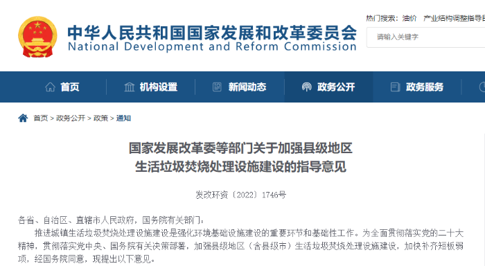因地制宜 分類施策 有力有序補齊縣級地區(qū)生活垃圾焚燒處理設施短板 ——《關于加強縣級地區(qū)生活垃圾焚燒處理設施建設的指導意見》解讀 中國國際工程咨詢有限公司 張英健 楊媛媛 徐春方 推進城鎮(zhèn)生活垃圾焚燒處理設施建設是強化環(huán)境基礎設施建設的重要環(huán)節(jié)和基礎性工作,是改善人居環(huán)境的重要內(nèi)容。黨中央、國務院高度重視城鎮(zhèn)環(huán)境基礎設施,黨的二十大報告明確提出要“提升環(huán)境基礎設施建設水平”。近日,經(jīng)國務院同意,國家發(fā)展改革委、住房和城鄉(xiāng)建設部、生態(tài)環(huán)境部、財政部、人民銀行等部門聯(lián)合印發(fā)《關于加強縣級地區(qū)生活垃圾焚燒處理設施建設的指導意見》(發(fā)改環(huán)資〔2022〕1746號,以下簡稱《指導意見》),全面系統(tǒng)提出加強縣級地區(qū)生活垃圾焚燒處理設施建設的指導思想、工作原則、主要目標、重點任務,指導各地有力有序推進焚燒處理設施建設。《指導意見》作為首個聚焦縣級地區(qū)生活垃圾處理的政策文件,是貫徹落實黨的二十大精神的重要舉措,對加快補齊縣級地區(qū)生活垃圾焚燒處理短板、提升生活垃圾治理水平、改善人居環(huán)境具有重要意義。 01 充分認識加強縣級地區(qū)生活垃圾焚燒處理設施建設的重要意義 (一)加強縣級地區(qū)生活垃圾焚燒處理設施建設是推進以縣城為重要載體的城鎮(zhèn)化建設的重要途徑。縣級地區(qū)(含縣級市)是我國城鎮(zhèn)體系的重要組成部分。截至2021年底,我國縣及縣級市數(shù)量超過1860個,約為全國縣級行政區(qū)劃數(shù)量的65%、地級及以上城市市轄區(qū)數(shù)量的2倍;城區(qū)人口約2.5億人,約占全國城鎮(zhèn)常住人口的30%。生活垃圾分類和處理是城鎮(zhèn)化建設的重要內(nèi)容,今年5月,中共中央辦公廳、國務院辦公廳印發(fā)《關于推進以縣城為重要載體的城鎮(zhèn)化建設的意見》,明確提出要建設與清運量相適應的垃圾焚燒設施。加強焚燒處理設施建設,加快完善縣級地區(qū)環(huán)境基礎設施,對促進新型城鎮(zhèn)化建設具有重要意義。 (二)加強縣級地區(qū)生活垃圾焚燒處理設施建設是提升環(huán)境基礎設施建設水平的重要內(nèi)容。環(huán)境基礎設施是基礎設施的重要組成部分,是深入打好污染防治攻堅戰(zhàn)、改善生態(tài)環(huán)境質(zhì)量、增進民生福祉的基礎保障。黨的二十大報告對提升環(huán)境基礎設施建設水平作出明確要求,今年1月,國務院辦公廳轉(zhuǎn)發(fā)國家發(fā)展改革委等部門《關于加快推進城鎮(zhèn)環(huán)境基礎設施建設的指導意見》對城鎮(zhèn)環(huán)境基礎設施建設作出系統(tǒng)部署。生活垃圾焚燒處理設施是環(huán)境基礎設施的重要組成部分,加快縣級地區(qū)生活垃圾焚燒處理設施建設,為構(gòu)建系統(tǒng)完備、高效實用的環(huán)境基礎設施體系提供有力支撐。 (三)加強縣級地區(qū)生活垃圾焚燒處理設施建設是推進城鄉(xiāng)人居環(huán)境整治的重要方式。環(huán)境基礎設施水平影響縣級地區(qū)人居環(huán)境和整體面貌,是縣級地區(qū)生態(tài)文明建設的重要支撐。近年來,我國生活垃圾焚燒處理方式快速發(fā)展,城市生活垃圾焚燒處理率明顯上升,但大量縣級地區(qū)生活垃圾清運量小,不具備建設規(guī)模化垃圾焚燒處理設施的條件,生活垃圾處理以填埋為主,存在較大安全環(huán)境隱患。加強生活垃圾焚燒處理設施建設,加快發(fā)展以焚燒為主的生活垃圾處理方式,是滿足群眾對優(yōu)美生態(tài)環(huán)境需要的重要舉措,是改善人居環(huán)境、保障人民健康的重要途徑。 02 因地制宜提出縣級地區(qū)生活垃圾焚燒處理設施建設的主要目標 我國縣級地區(qū)數(shù)量大、類型多,經(jīng)濟社會發(fā)展水平、人口資源分布、飲食習慣、生活垃圾組分等各不相同,《指導意見》充分考慮縣級地區(qū)資源環(huán)境承載能力、區(qū)位條件、生活垃圾焚燒處理設施建設工作基礎,分四類地區(qū)因地制宜提出了“到2025年,全國縣級地區(qū)基本形成與經(jīng)濟社會發(fā)展相適應的生活垃圾分類和處理體系,京津冀及周邊、長三角、粵港澳大灣區(qū)、國家生態(tài)文明試驗區(qū)具備條件的縣級地區(qū)基本實現(xiàn)生活垃圾焚燒處理能力全覆蓋。長江經(jīng)濟帶、黃河流域、生活垃圾分類重點城市、‘無廢城市’建設地區(qū)以及其他地區(qū)具備條件的縣級地區(qū),應建盡建生活垃圾焚燒處理設施。不具備建設焚燒處理設施條件的縣級地區(qū),通過填埋等手段實現(xiàn)生活垃圾無害化處理”的目標,并提出了“到2030年,全國縣級地區(qū)生活垃圾分類和處理設施供給能力和水平進一步提升,小型生活垃圾焚燒處理設施技術、商業(yè)模式進一步成熟,除少數(shù)不具備條件的特殊區(qū)域外,全國縣級地區(qū)生活垃圾焚燒處理能力基本滿足處理需求”的目標。 03 準確把握加強縣級地區(qū)生活垃圾焚燒處理設施建設的重點任務 《指導意見》堅持因地制宜、分類施策,按照“宜燒則燒,宜埋則埋”的原則,聚焦縣級地區(qū)生活垃圾焚燒處理能力短板,堅持問題導向、目標導向,從設施布局、回收轉(zhuǎn)運體系建設、焚燒能力建設、小型焚燒試點、設施運營