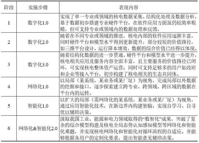 編者按:我國力爭2030年前實現碳達峰、2060年前實現碳中和,是黨中央經過深思熟慮作出的重大戰略決策,事關中華民族永續發展和構建人類命運共同體。能源領域碳排放總量大、占比高,是實現綠色低碳轉型和高質量發展的關鍵。公司能源業務部成立了以部門領導為龍頭、以青年黨員為骨干的“3060”研究小組,貫徹新發展理念和能源安全新戰略,對以新能源為主體的新型電力系統、碳排放和水電、新能源、核電、儲能、煤炭等方面高質量發展進行了探索性研究,以推動構建清潔低碳安全高效的能源體系。為促進研究成果的應用,本公眾號將核心研究成果以系列文章的形式陸續刊發,供業界同仁參考。 “兩個構建”背景下核電“數智化”發展思路與路徑研究 黃文 丁嵐 柴進進 摘要:在我國能源和電力產業,“數智化”因對能源要素配置效率優化、供需匹配協調、綜合能效提升乃至“兩個構建”實施成效的關鍵作用,長期以來備受各方關注。但在核電領域,對于“數智化”發展總體目標和實施路徑的研究一直被忽視。鑒于此,本文在總結相關行業經驗的基礎上,總結提出核電“數智化”發展的總體目標及相關要素,并以當前我國核電發展現狀及“數智化”的關鍵需求為切入點,探討形成了近期我國核電“數智化”發展實施路徑。 關鍵詞:核電;“數智化”;總體目標;BRK模型;發展路徑 一、引言 當前我國能源和電力產業正在經歷“百年未有之大變局”,在國家“碳達峰、碳中和”重大戰略決策指導下,以“兩個構建”(構建清潔低碳安全高效的能源體系、構建新能源占比逐漸提高/以新能源為主體的新型電力系統)為重點任務的能源綠色低碳轉型行動正穩步推進[1]。總結世界能源低碳轉型的歷史經驗,其往往與科技革命相伴相生、融合并進,以工藝技術的不斷創新和產業模式的升級再造等,在能源低碳轉型同時實現效率提升,推進社會生產力發展[2]。如能源從木柴到煤炭、煤炭到石油及電力的低碳轉型分別與兩次革命中蒸汽機以及內燃機、發電機的發明和廣泛應用密不可分[3]。 目前,全球新一輪科技革命正當其時,以大數據、云計算、物聯網、移動互聯網、人工智能等為代表的“數智化”(數字化、網絡化、智能化)技術及產業正不斷壯大,已實際成為這一輪變革的核心驅動和關鍵內容。在我國,“數智化”技術也在全面滲透基礎工業及經濟社會發展,不僅全面影響和改變了人們的生產生活方式,并已催生和推動我國數字經濟向更繁榮、更深化和更規范的階段發展[4]。 在我國能源和電力產業,“數智化”也因對能源要素配置效率優化、供需匹配協調、綜合能效提升乃至“兩個構建”實施成效的關鍵作用,長期以來備受各方關注。圍繞如何通過“數智化”發展促進我國能源低碳轉型,不少學者及相關機構已開展了大量研究。具體研究分為三類,第一類是以能源互聯網框架下的綜合能源系統為載體,聚焦“數智化”技術對多能源參與調節的支撐作用[5-7],保障能源安全供應和高效匹配;第二類是以“雙碳目標”下新型電力市場為載體,研究能源系統和市場數據的互聯互通、有機耦合[8-10],實現系統能效和市場績效提升;第三類則從“數智化”自身出發,對在能源各行業的相關理念、關鍵技術及應用前景進行闡述[11-13]。目前這些研究多關注于能源流通和消費領域,如電網和電力市場,生產領域則以火電、可再生能源或圍繞其建立的綜合能源系統為主要研究對象,如“源網荷儲”“風光水火儲”等,對核電“數智化”發展的研究分析相對較少。 現有對核電“數智化”發展的研究,集中在各核電集團運行技術部門或核電運營單位開展。如汪映榮、徐國彬、伍吉澤和干依燃等[14-17]分別論述了數字化核電廠的定義、5層模型、功能架構和關鍵技術等。潘保林、王謙和張陸洋等[18-20]分別研究分析了數字孿生、智能技術和5G通信技術等在核電領域中的可能應用場景。邱杰峰和孫宇[21-22]分別針對核電具體堆型(“華龍一號”)及建設階段進行了數字化實踐探索。孫奇[23]提出了智能核電理念、全過程實施總體架構及部分應用方向。但歸納總結相關調研文獻,研究內容多集中在“數智化”技術在核電行業本身的應用方向及相應的功能前景,對核電“數智化”發展總體目標和實施路徑的研究受到忽視。本文嘗試從該視角出發,在總結相關行業經驗的基礎上,總結提出核電“數智化”發展的總體目標及相關要素,并以當前我國核電發展現狀及“數智化”的關鍵需求為切入點,探討形成近期我國核電“數智化”發展實施路徑。 二、電力行業對數字化和智能化的界定及理解 數字化電廠的概念早在20世紀末就已出現,早期電廠采用了數字化控制技術,就可算作數字化電廠。2012年我國電力行業標準《火力發電廠熱工自動化術語》(DL/T701-2012)仍部分沿用了該傳統思路,將數字化電廠定義為“電廠數字化達到一定程度后的概念。電廠各級控制和管理系統(包括現場設備等基礎單元)均進入數字化后稱為數字化電廠”。 隨著信息技術對電力生產過程效能的提升,逐漸為電力行業所認識和關注,電廠智能化的概念也就在2010年前后應運而生。《火力發電廠熱工自動化術語》對電廠智能化的定義是,“廣泛采用現代信息處理和通信技術、智能傳感技術、智能執行機構技術,以及智能控制方法和管理決策技