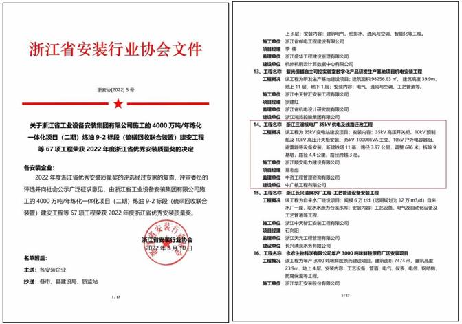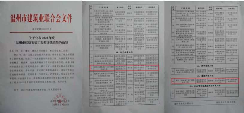 “七一”建黨節,公司第一管理事業部傳來捷報,其承攬的“浙江三澳核電廠某供電線路遷改工程”榮獲“2022年度溫州市優質安裝工程獎”、“2022年度浙江省優秀安裝質量獎”。此外,其承攬的我國首個單體百萬千瓦級陸上風電基地項目——“中廣核興安盟某革命老區風電扶貧項目一期工程項目”于6月29日并網發電,公司獲頒“工程建設突出貢獻獎”。