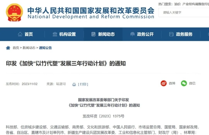 深入踐行“兩山”理念 扎實推進“以竹代塑” 朱黎陽 2022年11月7日,習近平總書記在致國際竹藤組織成立二十五周年志慶暨第二屆世界竹藤大會賀信上作出“以竹代塑”重要指示,為加強塑料污染全鏈條治理指明了方向。近日,國家發展改革委等部門印發了《加快“以竹代塑”發展三年行動計劃》(發改環資〔2023〕1375號,以下簡稱《行動計劃》),系統部署了七大重點行動、三大保障措施,并同步發布了“以竹代塑”主要產品名錄,推動“以竹代塑”高質量發展,助力減少塑料污染。 一、推進“以竹代塑”意義重大 推進“以竹代塑”是加強塑料污染全鏈條治理的必然要求。從國內看,雖然塑料垃圾大規模泄漏到自然環境的態勢得到了有效遏制,但是一次性塑料購物袋、外賣等領域問題仍然存在。從國際看,塑料污染問題受到國際社會廣泛關注,全球各國都在尋找兼顧環境治理與經濟發展的塑料污染治理道路。推進“以竹代塑”可以從源頭上減少塑料垃圾的產生,既是國內加強塑料污染全鏈條治理的有效途徑,也為全球塑料污染治理提供了解決方案。 推進“以竹代塑”是生態產品價值實現的具體舉措。良好生態環境是人民群眾的共有財富,把生態環境優勢轉化為生態農業、生態工業、生態旅游等生態經濟優勢,綠水青山就變成了金山銀山。“以竹代塑”依托竹子的可再生、可循環利用的特性,推動傳統生產模式的轉變,促進竹資源的生態價值轉換,真正把生態優勢轉化為經濟優勢。 推進“以竹代塑”是實現碳達峰碳中和的有力支撐。竹子生長快,固碳能力強,是林業碳匯的重要途徑。以竹木加工而成的竹木產品和建筑物,固碳時間可達幾十年、上百年。據測算,我國竹林每年可實現減碳1.97億噸、固碳1.05億噸;加工1噸竹材碳排放30千克,分別是鋼材的1/216、鋁材的1/220、水泥的1/41、塑料的1/19。據測算,若全球每年使用1億噸竹子替代聚氯乙烯產品,預計將減少約6億噸二氧化碳排放。 二、《行動計劃》描繪了“以竹代塑”發展具體路徑 《行動計劃》堅持系統思維,協調推進“以竹代塑”。一是協調政府和市場發揮合力,充分發揮市場配置資源的決定性作用,增強產業發展的內生動力;更好發揮政府作用,營造良好的發展環境。二是協調不同區域,綜合考慮不同地區資源稟賦、產業發展基礎,漸次推進。三是協調不同應用場景,提出要精準識別替代場景,發布了“以竹代塑”主要產品名錄,明確了優先替代的領域,具有很強的操作性。 《行動計劃》堅持科技創新優先。一是組織“以竹代塑”相關科研攻關,突破一批關鍵共性技術及重大裝備。二是強化優良種質資源選育和定向培育,培育適宜于不同“代塑”產品工業化生產的新品種。三是加強“以竹代塑”產品深度研發,補齊天然材料性能短板。四是加快研發先進制造裝備,提高竹林采伐、運輸、加工環節機械化水平。 《行動計劃》將綠色發展理念融入“以竹代塑”全過程。一是注重各領域之間的低碳循環可持續,強調著力抓好竹林資源培育、竹材精深加工、產品設計制造、市場應用拓展等全鏈條全要素環節。二是注重培育綠色高效的產業鏈,鼓勵主要竹產區因地制宜拓展“原料—加工—產品—營銷”上中下游產業鏈。三是鼓勵發展竹產業循環經濟,推行全竹利用產業模式,強化竹加工廢棄物循環利用,推廣應用竹材綜合利用技術裝備。 《行動計劃》堅持開放合作,以國際視野推進“以竹代塑”。一是以共建“一帶一路”倡議為引領,攜手國際竹藤組織,鼓勵中國企業走出去,支持竹資源相對豐富的國家發展“以竹代塑”產業,促進國際產能合作。二是依托中國國際消費品博覽會等活動,搭建對話交流平臺,推動政企合作和產學互動。三是在主要竹產區開展竹產品推廣對接活動,通過發布產品清單、需求清單、簽訂協議等方式,引導商貿流通企業與竹制品企業產銷協同、供需對接。四是在全國選擇竹資源豐富、竹產業基礎較好的地區,分批建設“以竹代塑”應用推廣基地,示范引領其他地區有序推進。 三、《行動計劃》的有效落實需全社會共同發力 主管部門需分工協作,加快完善有利于推動“以竹代塑”的法律法規、支持政策、標準認證等體系。地方政府要積極推廣“以竹代塑”產品,有條件的地方要創建“以竹代塑”應用推廣基地,總結可復制可推廣的經驗模式。龍頭企業要加強相關產品和先進技術裝備研發,不斷豐富“以竹代塑”新技術、新產品、新場景。行業協會要充分發揮橋梁紐帶作用,積極開展調查研究、品牌評價、標準制定等活動,引導“以竹代塑”企業用好國家各項政策措施。國際組織以共建“一帶一路”為引領,鼓勵支持中國企業走出去,創立國際品牌,促進國際產能合作。廣大消費者要積極參與,主動對不符合國家有關規定的塑料制品說“不”,形成減少一次性塑料制品消費的生活習慣。 | |||||
