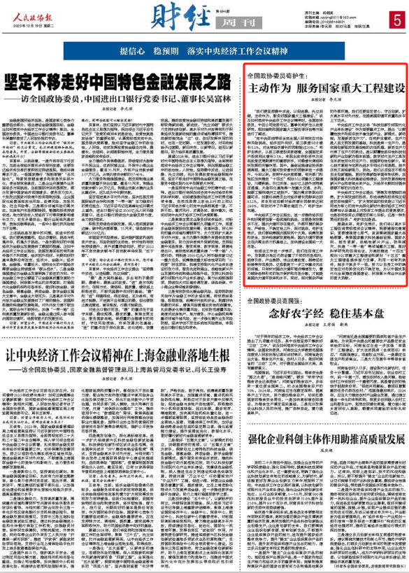 “我們要堅持穩中求進,以促進穩,先立后破,主動作為,服務好國家重大工程建設?!闭劶叭绾温鋵嵵醒虢洕ぷ鲿h精神時,全國政協委員,中咨公司黨委書記、董事長茍護生從政策研究、規劃編制和國家重大工程咨詢評估等方面進行了闡述。 △全國政協委員,中咨公司黨委書記、董事長茍護生 “黨中央團結帶領全黨全國人民有效應對各種風險挑戰,經濟回升向好,前三季度GDP增長5.2%,對全球經濟增長的貢獻超過30%?!逼堊o生表示,從前三季度投資數據看,全國固定資產投資同比增長3.1%,體現出政府投資作為宏觀政策逆周期調節的重要抓手,對穩增長調結構所發揮的關鍵作用。其中,基礎設施建設投資數據亮眼,重大工程對投資增長的貢獻率進一步提升。今年以來,按照中央決策部署,有關部門和地區加快推進“十四五”規劃102項重大工程建設,川藏鐵路、引江濟淮、金沙江上游外送特高壓通道、大型石化基地等一批重大交通、水利、能源工程相繼開工或投產?!皣鴥刃枨蟊憩F也可圈可點。如最終消費支出對經濟增長貢獻率達到83.2%,資本形成總額對經濟增長貢獻率達到29.8%,有效對沖了外需收縮壓力?!逼堊o生補充道。 中央經濟工作會議指出,進一步推動經濟回升向好需要克服一些困難和挑戰,主要是有效需求不足,國內大循環存在堵點,外部環境的復雜性、嚴峻性、不確定性上升。面對挑戰,茍護生表示,我們要統籌國內國際兩個大局,統籌發展和安全,加快構建新發展格局。國內大循環要建立在內需主動力的基礎上,加快建設全國統一大市場。 他結合工作進一步表示,我們在咨詢工作中,發現部分地區仍然設置了不同的市場規則,招商引資、產業激勵、涉企優惠政策、稅費征收標準等存在差異。這些都是下一步工作重點關注的領域,只有針對國內大循環堵點精準發力,著力破除各種形式的地方保護和市場分割,才能提高國內大循環效率和水平。同時,面對復雜嚴峻的外部環境,我們還要堅定信心、守正創新,擴大高水平對外開放,在提高國際循環質量和水平上下功夫。 中央經濟工作會議將“科技創新引領現代化產業體系建設”作為首要重點工作,提出“以顛覆性技術和前沿技術催生新產業、新模式、新動能,發展新質生產力”。在茍護生看來,生產力是人類文明發展的基礎,科技是第一生產力,是實施創新驅動發展戰略的內在機理。新質生產力代表了生產力的躍遷,是以顛覆性前沿性科技創新和產業創新為根本前提,數字時代生產工具發生本質性變化的生產力。我國原創性創新少,核心技術掌控與世界先進水平相比仍有差距,技術交流又面臨新阻力。因此,我們必須堅定不移走自主創新道路,更好發揮新型舉國體制優勢,加強國家重大科技基礎設施建設,加快發展戰略性新興產業和培育未來產業,為經濟長期向好提供源源不斷的內在動力。 中央經濟工作會議提出“要激發有潛能的消費,擴大有效益的投資,形成消費和投資相互促進的良性循環”。“擴大有效益的投資是以習近平同志為核心的黨中央深化新時代做好經濟工作的規律性認識基礎上對投資工作提出的更高要求,也是政府投資必須錨定的核心目標,這是一種負責任的投資?!逼堊o生如是說。 展望未來,茍護生表示,我們將以高水平工程咨詢貫徹落實會議精神,既要增強憂患意識,更要增強信心底氣,緊緊圍繞國家重大戰略部署,聚焦國家重大科技基礎設施、國家水網、城市更新、戰略性新興產業、防洪減災、共建“一帶一路”等領域重大工程,做好科學研究和咨詢論證,為高效推進“十四五”規劃102項重大工程建設和謀劃“十五五”重大工程儲備提供智力支撐,利用一切有利條件,能多干就多干一些,努力以自身工作的確定性應對形勢變化的不確定性,為以中國式現代化全面推進強國建設、民族復興偉業作出新的更大貢獻。 | |||||