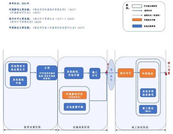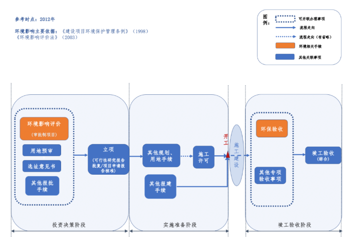 編者按 新中國成立以來,我國基礎(chǔ)設(shè)施投資建設(shè)取得了舉世矚目的成就,是國家經(jīng)濟(jì)社會發(fā)展的重要支撐,為人民生活水平的提高做出了巨大貢獻(xiàn)。改革開放以來,市場開始發(fā)揮配置資源的基礎(chǔ)性作用,為我國基礎(chǔ)設(shè)施的發(fā)展煥發(fā)了新的活力。據(jù)統(tǒng)計,我國基礎(chǔ)設(shè)施資產(chǎn)總規(guī)模在1990年排在全世界約第15位,2000年上升到第7位,2010年躍升為第3位,至2018年已居世界首位。 黨的二十大報告在回顧過去五年的工作和新時代十年的偉大變革中,充分肯定了基礎(chǔ)設(shè)施在經(jīng)濟(jì)社會中發(fā)揮的重要作用,報告指出,我國“建成世界最大的高速鐵路網(wǎng)、高速公路網(wǎng),機(jī)場港口、水利、能源、信息等基礎(chǔ)設(shè)施建設(shè)取得重大成就”。我國基礎(chǔ)設(shè)施多年來大規(guī)模的投資建設(shè)和存量資產(chǎn)的高速積累,是黨中央、國務(wù)院在建立社會主義市場經(jīng)濟(jì)體制背景下,關(guān)于投融資體制改革部署的重要成果。 項(xiàng)目前期工作手續(xù)的合規(guī)性要求,是基礎(chǔ)設(shè)施能夠發(fā)揮其應(yīng)有價值的重要前提,也是投融資體制改革關(guān)注的重點(diǎn)內(nèi)容之一。伴隨著政府職能轉(zhuǎn)變、深化“放管服”改革和擴(kuò)大有效投資等重大決策的關(guān)鍵部署,我國工程建設(shè)項(xiàng)目審批制度不斷優(yōu)化和改革,基礎(chǔ)設(shè)施項(xiàng)目投資前期決策管理經(jīng)歷了復(fù)雜的演變進(jìn)程,其合規(guī)性標(biāo)準(zhǔn)也在與時俱進(jìn)、不斷完善。當(dāng)前我國已進(jìn)入基礎(chǔ)設(shè)施存量時代,存量資產(chǎn)項(xiàng)目前期工作手續(xù)的合規(guī)性是重要的盤活條件之一,部分合規(guī)性問題已成為新時代社會廣泛關(guān)注的焦點(diǎn)。本項(xiàng)專題研究立足投融資體制和項(xiàng)目審批制度變革的歷史背景,嘗試?yán)迩寤A(chǔ)設(shè)施項(xiàng)目在立項(xiàng)、土地、規(guī)劃、環(huán)境、建設(shè)施工等方面主要前期工作的歷史變革脈絡(luò),梳理不同管理事項(xiàng)之間的邏輯關(guān)聯(lián),從這一視角提供基礎(chǔ)設(shè)施項(xiàng)目前期工作手續(xù)的合規(guī)性認(rèn)識。本公眾號將研究報告的部分成果以系列文章的形式陸續(xù)刊發(fā),研究報告第一部分為背景與立項(xiàng)篇,第二部分為土地與規(guī)劃篇,第三部分為建設(shè)施工篇,本文是研究報告的第四部分(環(huán)境篇),供業(yè)界同仁參考。 基礎(chǔ)設(shè)施項(xiàng)目前期工作手續(xù)合規(guī)性研究(Ⅳ) 環(huán)境篇 張雪飛 伍迪 摘要:綠水青山就是金山銀山,基礎(chǔ)設(shè)施項(xiàng)目的建設(shè)可能會對環(huán)境產(chǎn)生影響,因此需要格外重視項(xiàng)目在環(huán)境保護(hù)方面的有關(guān)前期工作,具有代表性的手續(xù)事項(xiàng)主要包括環(huán)境影響評價、排污許可、環(huán)保專項(xiàng)驗(yàn)收等。建設(shè)項(xiàng)目環(huán)境影響評價,是對項(xiàng)目實(shí)施后可能造成的環(huán)境影響進(jìn)行分析、預(yù)測和評估,提出預(yù)防或者減輕不良環(huán)境影響的對策和措施,進(jìn)行跟蹤監(jiān)測的方法與制度。排污許可,是環(huán)境保護(hù)主管部門依排污單位的申請和承諾,通過發(fā)放排污許可證法律文書形式,依法依規(guī)規(guī)范和限制排污單位排污行為并明確環(huán)境管理要求,依據(jù)排污許可證對排污單位實(shí)施監(jiān)管執(zhí)法的環(huán)境管理制度。如果說環(huán)境影響評價制度是建設(shè)項(xiàng)目的環(huán)境準(zhǔn)入門檻,那么排污許可制度是企事業(yè)單位生產(chǎn)運(yùn)營期排污的法律依據(jù)。本文聚焦基礎(chǔ)設(shè)施項(xiàng)目環(huán)境方面的手續(xù),對手續(xù)主要內(nèi)容和制度演進(jìn)進(jìn)行系統(tǒng)梳理,供業(yè)界參考。 關(guān)鍵詞:基礎(chǔ)設(shè)施;合規(guī)性;環(huán)境影響評價;排污許可;政策演進(jìn) 當(dāng)前我國基礎(chǔ)設(shè)施項(xiàng)目在環(huán)境方面前期工作主要包括環(huán)境影響評價和排污許可等相關(guān)手續(xù),此外,在工程項(xiàng)目的竣工驗(yàn)收階段,還包括環(huán)保方面的專項(xiàng)驗(yàn)收等。 ——開展建設(shè)項(xiàng)目環(huán)境影響評價,自上世紀(jì)末《建設(shè)項(xiàng)目環(huán)境保護(hù)管理?xiàng)l例》開始施行以來就一直都是基礎(chǔ)設(shè)施項(xiàng)目在環(huán)境方面前期手續(xù)的核心工作。環(huán)境影響評價是對規(guī)劃和建設(shè)項(xiàng)目實(shí)施后可能造成的環(huán)境影響進(jìn)行的分析、預(yù)測和評估,并提出預(yù)防或者減輕不良環(huán)境影響的對策和措施,進(jìn)行跟蹤監(jiān)測。實(shí)行建設(shè)項(xiàng)目環(huán)境影響評價制度,最主要目的是為了防止建設(shè)項(xiàng)目產(chǎn)生新的污染、造成生態(tài)環(huán)境的破壞。 ——排污許可制度,從2016年11月開始施行,形成了與環(huán)境影響評價制度的有機(jī)銜接。如果說環(huán)境影響評價制度是建設(shè)項(xiàng)目的環(huán)境準(zhǔn)入門檻,那么排污許可制度是企事業(yè)單位生產(chǎn)運(yùn)營期排污的法律依據(jù)。為實(shí)現(xiàn)從污染預(yù)防到污染治理和排放控制的全過程