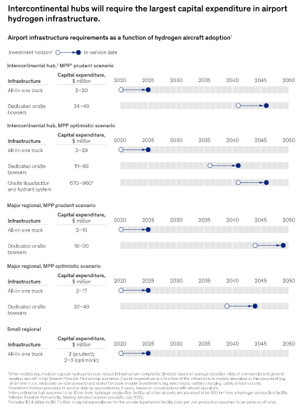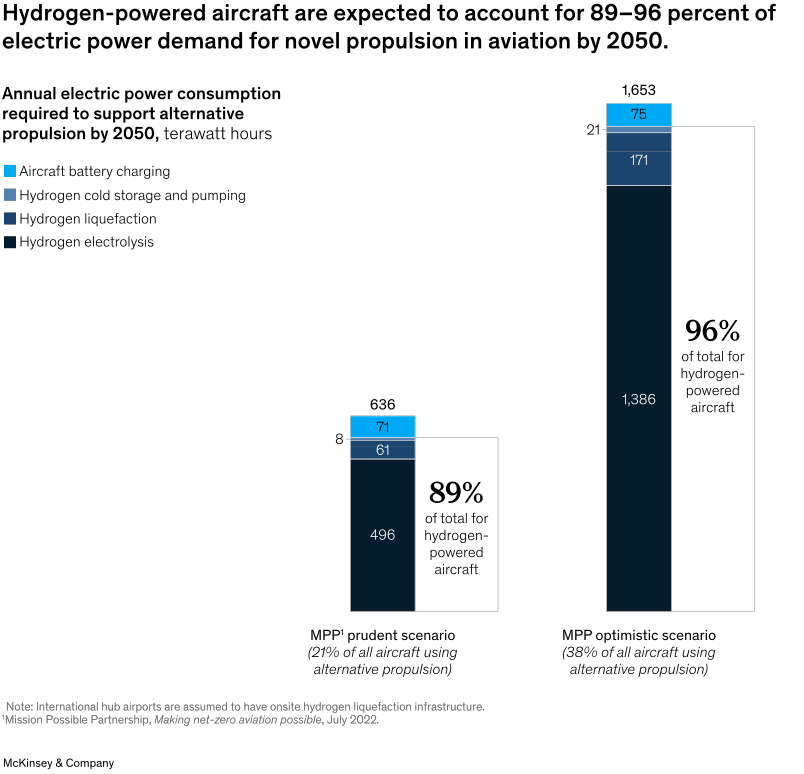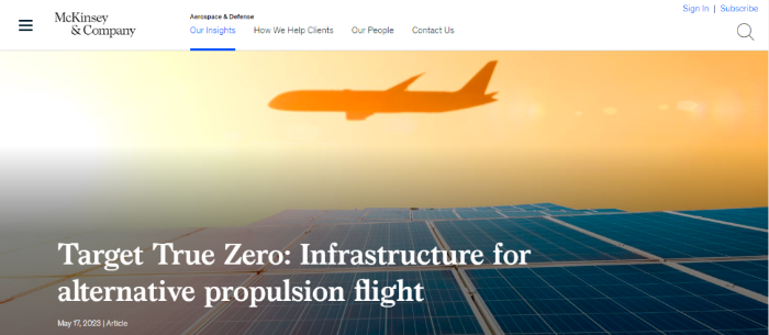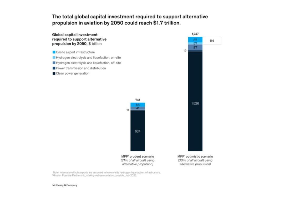 隨著對解決航空業(yè)氣候影響的解決方案的尋求變得更加迫切,人們對例如氫氣、電池電力和混合電力驅(qū)動(dòng)飛機(jī)等新型推進(jìn)技術(shù)產(chǎn)生了極大的興趣。根據(jù)MPP對航空業(yè)能源的估計(jì),到2050年,電池電力和氫動(dòng)力飛機(jī)可能占所有飛機(jī)的21%-38%,占該行業(yè)整體能源需求的15%-34%。雖然時(shí)間上可能感覺很遙遠(yuǎn),但這一新技術(shù)將在這十年內(nèi)出現(xiàn)。 針對這些基礎(chǔ)設(shè)施的變化,以及機(jī)場和其他利益相關(guān)方如何開始準(zhǔn)備,仍存在不確定性。近期,麥肯錫發(fā)布了《瞄準(zhǔn)低碳:為電池和氫動(dòng)力飛機(jī)提供基礎(chǔ)設(shè)施》的報(bào)告,旨在幫助人們了解影響新型推進(jìn)器的一些關(guān)鍵考慮因素。