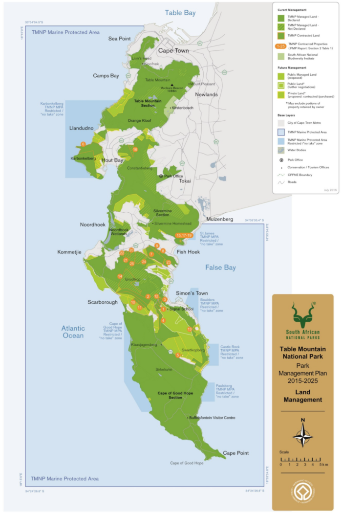摘要:國家公園是一種保障國土生態安全、提升生態系統服務功能、推動自然資源科學保護、開展國民精神教育、促進地方綠色發展等多重目標的有效模式。本文以南非的桌山國家公園和肯尼亞馬賽馬拉國家公園為例,簡要介紹其基本概況、主要做法和成效,結合我國自然保護地發展實際情況,提出加快自然保護地申報建設、擴大生物多樣性保護范圍、高度重視當地居民參與保護和建設、強化宣傳教育等建議。 關鍵詞: 國家公園;生物多樣性;南非;桌山;肯尼亞; 馬賽馬拉 一、南非、肯尼亞保護地基本情況 (一)南非保護地概況 南非共和國位于非洲大陸最南端,地處大西洋和印度洋交界處,東、南、西三面臨海。國土面積121.91萬平方公里,2022年人口6060.5萬人,國內生產總值66383.46億蘭特(約合4052.38億美元),人均GDP109535蘭特(約合6687美元)。南非交通通訊等基礎設施具有較高水平,建筑樣式和行為法則均效仿歐洲。 南非擁有極為豐富的自然和人文旅游資源,是世界著名旅游度假勝地,是非洲接待國際游客最多的國家。2019年接待游客1022.8萬人,受新冠肺炎疫情影響,2021年游客量降至225.6萬人,2022年恢復至569.8萬人(圖1)。 圖1 南非共和國2019~2022年月度游客量統計變化 來源:南非統計局 南非有24個國家公園,涵蓋野生動物保護、濕地保護,海洋保護、森林生態保護等類型(圖2)。其中,桌山國家公園是其典型代表。 圖2 南非自然保護地分布圖[1] 桌山國家公園從開普敦的桌山綿延至大西洋與印度洋相交的海角處,占地面積221平方公里,幾乎跨越了整個開普省,是開普花卉世界遺產地(the Cape Floral Region World Heritage Site,2004)的一部分。桌山國家公園2/3的面積沒有設門卡點,供人自由進出。盡管公園有很多入口,但僅有4個是收費的,以著名的桌山為公園主體,還包括開普角、好望角、企鵝灘、海豹島等保護區。桌山和開普角的游客量超過85萬人/年,企鵝灘的游客量每年也超過65萬人。通過無門入口不付費進出的游客量每年大概有400萬人[1]。 桌山,因一座臨海的山峰頂如桌面而得名,是“世界新七大自然奇觀”之一,最高海拔1088米。桌山擁有世界上最大規模的瀕危物種,主要植被類型是瀕危的半島砂巖凡波斯和極度瀕危的半島花崗巖凡波斯。桌山植被是開普植物保護區的一部分,估計有2285種植物(超過1100種是鄉土植物物種)被記錄在冊,最常見的野生動物是蹄兔,還有豪豬、貓鼬、蛇和龜等。 圖3 南非桌山國家公園(攝影:張同升) 好望角自然保護區位于開普半島南端,始建于1939年,占地7750公頃,海岸線綿延40多公里,有100多處海灘,由西向東分成三個部分,即好望角、麥克萊爾角和開普角,其中開普角海拔238米,崖頂有始建于1857年的燈塔,登臨遠眺,海天一色。植物有1200余種,遺存有世界上為數不多的金黃色帝王花;動物有狒狒、開普斑馬等,鳥類有鴕鳥、黑鷹等250余種。 圖4 好望角(攝影:張同升) 企鵝灘保護區位于開普敦西蒙鎮的博德斯海灘(Boulders Beach)。這里的企鵝身材瘦小,喙前端有一圈淡白色的圓環,整個足部以下全為黑色,只在非洲大陸南端的開普敦海域出現,故名斑嘴環企鵝、黑足企鵝、非洲小企鵝。1910年時非洲企鵝約有150萬只,上世紀初期開普敦附近水域數起沉船漏油事件污染了企鵝的居住地,使得大部分企鵝死亡,只剩下不到原數量7%的非洲小企鵝得以生存與繁殖。1982年,2只非洲小企鵝來到博德斯海灘安家,當地居民自發進行保護,1983年,建立博德斯企鵝保護區。到2005年,這里的企鵝數量已達到3900只。受棲息地破壞、原油泄漏和其他海洋污染、氣候變暖導致魚群變遷及本地動物的傷害、過度捕撈、大量旅游活動沖突等因素影響,到2011年,保護區內還剩下2100只企鵝。目前又逐漸恢復到3000多只[2]。 海豹島是開普敦豪特灣海域中的一個長條形礁石島。每天上千只海豹成群結隊地登上礁石棲息,這些海豹屬于開普軟毛海豹,是南部非洲的本土品種,繁殖于南非及納米比亞的海岸線上,壽命20~40年。來往的漁民沒有對這些唾手可得的漁貨動心,而是自發性地進行保護,附近海域禁漁,嚴禁旅游觀光人員登島,避免干擾其生活環境。 圖5 海豹島(攝影:陳子琦) (二)肯尼亞保護地概況 肯尼亞共和國位于非洲東部,毗鄰阿拉伯海,赤道橫貫中部,面積58.26萬平方公里,2022年人口5608.2萬人。世界銀行GDP國別統計數據顯示,2021年肯尼亞國內生產總值1103.5億美元,人均GDP1704.97美元。肯尼亞境內多高原,平均海拔1500米,自然環境優美,常年氣候溫和,以擁有眾多國家公園和自然保護區而聞名。明代鄭和下西洋時曾到過肯尼亞濱海城市蒙巴薩和馬林迪。肯尼亞農業增加值占GDP的35%,全國70%以上的人口從事農牧業。茶葉、咖啡和花卉是農業三大創匯項目。肯尼亞與中國關系良好,大量道路交通及城市市政設施由中國援建。 肯尼亞是野生動物王國,以觀賞動物大遷徙為代表的肯尼亞旅游業營業額占其GDP的8.8%[3]。肯尼亞保護地 (Protected areas) 體系與野生動物保護計劃密切相關。19世紀初盡管當地以野生動物狩獵為生,但由于當時非洲部落人口數量很少而且分布極為分散,這些只以滿足當地居民基本生活需求而無野生動物貿易的狩獵活動對野生動物種群的生存影響很小。19世紀中葉以來,隨著歐美及亞洲對東非象牙、犀牛角等出口貿易的需求增長,肯尼亞沿海地帶的象群數量銳減至幾近消失。1890年柏林條約(the Treaty of Berlin)