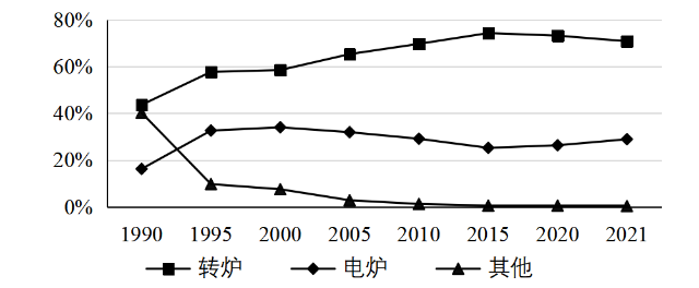 2.我國粗鋼生產以轉爐工藝為主,2000年以后平爐工藝逐漸被淘汰