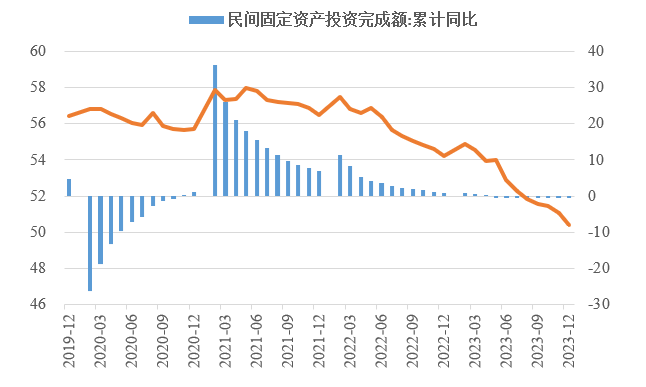 (二)基建投資內部出現分化,公共設備管理業投資增速下降明顯。2023年基建投資仍然發揮了穩定投資的支撐作用,但基建投資內部出現明顯分化,受財政壓力和隱債治理影響,占整體基建投資一半以上的水利環境和公共設施管理業投資增速大幅回落,僅同比微增0.1%,較上年大幅回落10.2個百分點。公共設施管理業相關投資與市政工程密切相關,該部分投資大幅回落很大程度表明地方財政承壓加劇。12月水泥發運率、石油瀝青開工率均普遍處于40%以下,并呈現走弱態勢,預示著基建投資增速可能繼續放緩。