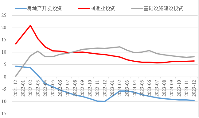 圖3  三大領域固定資產投資增速(累計同比,%)