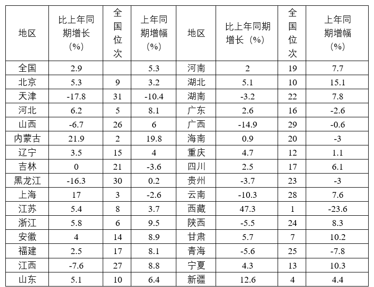 表2  1—11月全國各省固定資產投資情況