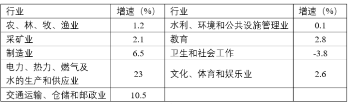 表1  1—12月我國各行業固定資產投資情況