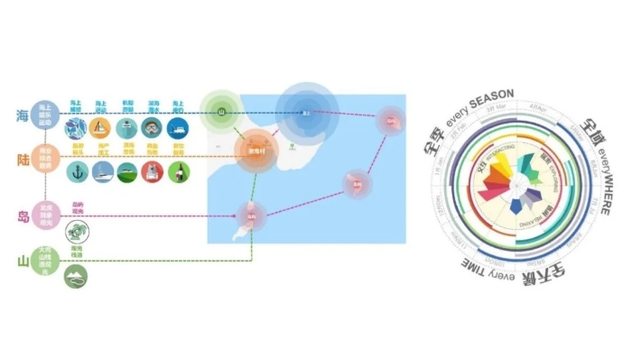 2024年10月15日下午,習近平總書記在福建省漳州市東山縣,考察陳城鎮澳角村,了解當地推進鄉村全面振興等情況,指出要“做好‘海’的文章”,在當地引發熱烈反響。長期以來,習近平總書記的系列重要論述為鄉村振興和鄉村規劃指明了方向。“民族要復興,鄉村必振興”“鄉村振興是一盤大棋,要沿著正確方向把這盤大棋走好,必須規劃先行”,這些論述深刻闡明了規劃設計在鄉村振興中的重要作用,強調鄉村振興要堅持規劃先行、切實發揮規劃引領作用。作為漳州市城鄉規劃建設的重要技術支撐單位,福建中咨規劃集團堅持以規劃賦能,走好鄉村規劃這步“先手棋”,助力澳角村在鄉村振興的千帆競發中并進爭先。 澳角村位于東山縣的東南部,兩海交匯、三面朝海、四島守護,面積6.83平方公里。全村現有大馬力鋼質漁船88艘、水產品加工企業38家、海鮮電商117家、民宿41家。2023年村集體收入173萬元,農民人均可支配收入5.8萬元,先后獲評全國文明村、全國最美漁村等稱號。 全景俯瞰圖 近年來,福建中咨規劃集團結合地方實際情況和規劃工作特點,在澳角村開展《東山縣陳城鎮澳角村旅游規劃暨人居環境提升規劃設計》《東山澳角雙月灣、大肉山景區旅游策劃及景觀概念方案設計》等多個規劃設計項目,為澳角村鄉村振興工作奠定基礎。 依山傍海,村美民富。項目組深挖澳角村特色文化,打響東南沿海漁旅融合新標桿,將“匠心”體現在鄉村振興的每一絲脈絡、每一處細節。 因地制宜 促進鄉村產業融合 澳角村具有依山傍水的空間肌理、風景秀麗的自然風光和得天獨厚的資源稟賦。作為集度假休閑、娛樂交互、藝術文化交流為一體的多功能都市海岸,澳角村著力打造以海洋開發為核心的旅游、生產、生活區,并逐步形成以海洋捕撈及養殖業、水產品精深加工產業、鄉村旅游產業、電商微商產業為發展基礎的四大產業,造福當地人民。 福建中咨規劃集團在充分了解村民對產業升級的需求后,著手梳理澳角村產業發展現狀,針對“向海而生”的產業發展訴求,設計團隊創新“海洋+文旅”模式,探索文旅新質生產力發展路徑,賦能漁村漁旅高質量融合發展,唱響“山海經”新篇章。 設計團隊為滿足多節點、多層次、多樣性的旅游和生產生活需求,在時間上,堅持“全季節、全天候”的產業項目策劃,遵循當地漁業作息規律,引導游客、村民進行濱海技藝觀賞和節慶互動;在空間上,融合“山-陸-海-島”的聯動發展模式,將海上娛樂、商業服務、自然觀光相結合,塑造山海一體的澳角村度假品牌形象。 “海洋+”發展策略 設計團隊的心血在實踐中取得良好成效。近年來,在第十四屆全國人大代表、澳角村黨委書記林華忠的帶領下,澳角村發展冷鏈倉儲,借力電商直播等平臺,讓海產品“游”上互聯網,遠銷海內外。同時,澳角村依托其地形優勢和豐富的旅游資源發展鄉村旅游,逐步成為澳角村新的發展引擎。 黨建引領 繪就鄉村振興圖景 作為鄉村振興試點村,澳角村連續五屆榮獲中央文明委授予的“全國文明村”稱號,先后獲得“福建省新農村建設示范村”“福建省鄉村旅游特色村”等榮譽稱號。澳角村黨委發揚敢為人先、敢于拼搏的精神,全面加強基層黨組織建設,致力打造“海味黨建、號角先鋒”黨建品牌,以“黨建+鄉村振興”為載體,全力實現“支部創五星、黨員當先鋒、海味黨建濃、鄉村振興實”的目標。這種黨建與地方發展相融互促的鮮明特色,也成為中咨項目組在規劃中著力突出的亮點。 項目組通過調研發現,主要居民點西北側主入口沿街兩側風貌較差,于是,他們腦洞大開,通過給街道“老墻上新妝”,巧妙地將黨建文化建設與村容村貌提升工作相結合,突顯地方黨建特色。同時深入挖掘東山紅色文化,選取谷文昌同志在東山植樹造林防風治沙的偉大事業與鄉村振興的實踐工作為題材,將澳角村地方黨建事跡、特色黨建文化融入黨建墻設計,提升文化在地性;優化行道樹及周邊綠地植物配置,為澳角村道路提升提供良好示范。 澳角村黨建墻立面效果圖 “項目中我們進一步落實了鄉村規劃中加強村莊規劃的宣傳工作要求。”項目負責人鄭熙說道,“在設計中我們將海浪紋與照片墻相結合,既體現了東山海島的自然風貌,又使照片墻帶來歷史長河承載古今、谷文昌精神不斷延續的景觀文化效果。” 生態整治 提高人居環境質量 澳角村古厝風貌獨具特色,站在古厝最高處可欣賞山海美景,而穿梭在古厝間,又可在歷史街巷、“國姓井”等地體驗古色古香。但古厝的古典風貌也伴隨著整體環境堪憂、電線錯亂、垃圾散落、部分墻體殘破等問題,整體規整亟需提升。項目團隊結合古厝現有資源,修舊如舊,全力打造古厝新風貌。 綠水青山就是金山銀山。對于澳角來說,碧海銀灘就是當地村民的“金山銀山”。為發展好澳角村旅游業,項目組立足當地資源、保護生態,根據澳角村古厝和媽祖廟等資源,將原有的基礎設施進行升級改造,融入“文化+旅游”模式,打造創意民宿、文創書吧、休閑茶座等多種業態,賦予古厝新的功能價值,使古厝煥發出新的生機。同時,結合南月灣獨有的海濱條件,對現有的餐飲點及周邊環境進行綜合整治提升,增設生態停車場、游客服務中心,構建完善的海濱浴場設施,綜合提高了人居環境質量,為游客帶來美好的海灣之旅。 澳角村功能空間分