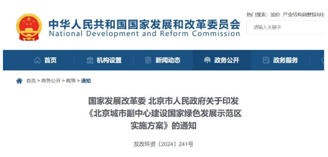 展首都綠色之翼 創全國示范之先 高質量建設國家綠色發展示范區 ——《北京城市副中心建設國家綠色發展示范區實施方案》解讀 張英健 木其堅 近日,經國務院同意,國家發展改革委、北京市人民政府聯合印發《北京城市副中心建設國家綠色發展示范區實施方案》(發改環資〔2024〕241號,以下簡稱《實施方案》),明確了北京城市副中心綠色高質量發展、打造人與自然和諧共生樣板的工作路徑,為北京城市副中心有序承接中心城區非首都功能疏解、推進首都城市功能重組和布局優化,建設和諧、宜居、美麗的綠色發展高地繪制了總體藍圖,對于推動北京“新兩翼”建設取得更大突破,促進京津冀協同發展具有重要而深遠的意義。 1、踐行習近平生態文明思想是北京城市副中心建設的根本遵循 規劃建設北京城市副中心,與雄安新區形成北京的“新兩翼”,是以習近平同志為核心的黨中央作出的重大決策部署,是千年大計、國家大事。早在2016年北京城市副中心研究部署規劃階段,習近平總書記就強調,北京城市副中心建設要牢固樹立并貫徹落實創新、協調、綠色、開放、共享的發展理念,構建藍綠交織、清新明亮、水城共融的生態城市布局,著力打造國際一流和諧宜居之都示范區,建成綠色城市、森林城市、海綿城市、智慧城市。2021年8月,國務院印發《關于支持北京城市副中心高質量發展的意見》,明確提出在北京城市副中心建設國家綠色發展示范區,堅持將綠色發展理念融入經濟社會發展全過程。近年來,京津冀3省市切實履行主體責任,中央有關部門和單位大力支持配合,疏解北京非首都功能初見成效,北京城市副中心高質量發展步伐加快,“軌道上的京津冀”加速形成,北京城市副中心美麗宜居水平大幅提升,科技創新和產業融合發展水平持續提升,人民群眾獲得感顯著增強。實踐證明,黨中央關于北京城市副中心的安排部署,特別是堅持將綠色發展作為城市發展底色的決策部署科學合理、順應民心,符合我國新時代高質量發展需要。 北京城市副中心肩負著有序承接中心城區非首都功能疏解、推進首都城市功能重組和布局優化、探索人口經濟密集地區優化開發模式的艱巨任務。與雄安平地建新城不同,北京城市副中心本身已有城市建設的基礎,如何在既有基礎上脫胎換骨、綠色升級,打造一個不一樣的和諧宜居之城,關鍵是必須牢牢把握住習近平生態文明思想這個最核心的思想武器。《實施方案》認真貫徹黨中央、國務院決策部署,時時處處踐行綠水青山就是金山銀山理念,牢固樹立節約集約循環利用的資源觀,以實現碳達峰碳中和目標為引領,將綠色發展理念融入北京城市副中心經濟社會發展各領域全過程,協同推進降碳、減污、擴綠、增長,擘畫了北京城市副中心的發展藍圖,描繪了青山常在、綠水長流、空氣常新的美麗畫卷,印發后必將成為北京城市副中心綠色高質量發展的重要指南。 2、做好北京城市副中心綠色發展六篇示范文章 北京城市副中心建設國家綠色發展示范區,不是戴帽子、做盆景,是要真正解題破題,探索既有建成區綠色低碳升級的可行路徑,從而為首都乃至全國各個地區提供可推廣、可復制的經驗。《實施方案》明確,將聚焦建筑、交通、產業三大關鍵領域和能源、生態、文化三大重點支撐開展綠色示范,統籌產業結構調整、污染治理、生態保護、應對氣候變化,協同推進降碳、減污、擴綠、增長,推動北京城市副中心經濟社會各方面和全過程綠色低碳發展。綠色建筑示范方面,統籌考慮新建建筑建造、既有建筑改造和智能建造應用,推進實施工程建設全過程綠色建造,大力推行綠色建筑和超低能耗建筑,加大智能建造應用力度,推動建筑領域全過程節約資源和減少碳排放,實現建筑領域綠色化、品質化發展和數字化、智能化升級。綠色交通示范方面,建設高效綠色的軌道交通,完善生態友好的道路交通,推進綠色智能交通管理,推動區域綠色低碳交通一體化,構建承載輻射功能突出、便捷暢達、人本生態的現代綜合交通體系,為北京城市副中心與河北省三河市、大廠回族自治縣、香河縣一體化高質量發展提供重要支撐。綠色產業示范方面,推進數字化智能化綠色化融合發展,著力提升產業綠色化發展水平,強化綠色金融商務服務功能,推進文化旅游商務融合發展,加強綠色產業國際國內交流與合作,在落實碳達峰碳中和目標任務過程中鍛造新的產業競爭優勢。綠色能源示范方面,完善能源消耗強度和總量調控,全面提升能源利用效率,大力發展可再生能源和余熱利用,積極拓展綠色電力應用,大力推廣應用先進能源技術,全面建立安全可靠、綠色低碳的能源體系。綠色生態示范方面,建設水城共融的生態城市,建成藍綠交織的森林空間,持續抓好空氣污染治理,加強噪聲污染綜合防治,加強韌性城市建設,加強跨區域生態環境共治,形成清新美麗宜居的綠色空間格局。綠色文化示范方面,廣泛宣傳生態文明理念,倡導簡約適度生活方式,推動普及綠色發展教育,積極營造綠色文化氛圍,讓綠色發展理念和生態文化深入人心。 3、目標清晰、有的放矢是《實施方案》的突出特點 習近平總書記多次強調“一分部署,九分落實”。一切規劃方案的生命力都在于實施,必須有清晰的工作目標和務實的落地舉措,充分調動各方面的積極性、主動性和創造性,從而形