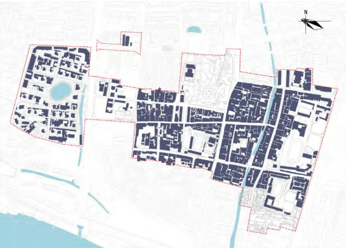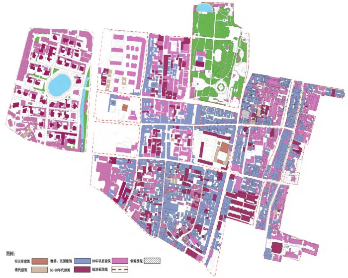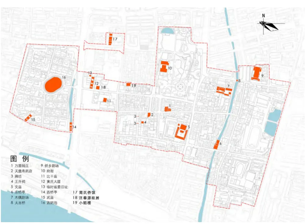文化傳承視角下的漳州古城保護與更新策略研究 張健 摘要:歷史古城承載著中華民族的血脈和記憶,具有極大的保護價值。如何在保持古城風貌的同時進行合理更新改造,是一項值得深究的重要課題。本文基于文化傳承的視角,以漳州古城為例,分別從建筑風貌、文化底蘊、公共空間、街巷肌理、生活氣息五個方面分析了漳州古城的文化特色及保護現狀,并以突出漳州古城“閩南風、漳州味、宋河韻、老街情、慢生活”的地域文化特征為目標,分別提出打造閩南名片、延續文化脈絡、重現宋河古韻、恢復街巷肌理、保留生活氣息的古城保護與更新策略。 關鍵詞:古城;保護更新;文化傳承;漳州 一、研究背景 近年來,我國一直處于城鎮化飛速發展的階段,城市經濟水平逐漸提高。但同時,快速城鎮化導致城市呈現“粗放式”發展的局面[1],使得城市無秩序地蔓延和擴張,從而導致了一系列復雜的城市問題。長久以來,城市的發展過于追求經濟效益和價值,而忽視了對于空間品質提升的需求,這也就導致了城市內部很多特色區域、歷史地段因違背了經濟利益而被侵蝕、被破壞,甚至逐漸走向衰亡,城市失去了原有的文脈和特色。 歷史文化街區作為一個城市聯結歷史與未來的紐帶,承載著中華民族刻在基因里的傳承和血脈,從某種程度上來說,是一個城市生命的延續。歷史文化街區不應該作為一個 城市發展的犧牲品被湮沒在歷史長河中,而應該作為一個城市對外展示的名片被人們所記住。歷史風貌彌足珍貴、歷史街區不可再生[2],若想要延續歷史文化街區的精神和記憶,必須采取適宜的手段對其進行適度開發與更新,以在發展與保護之間求得平衡[3],實現“在保護中發展,在發展中保護”[4]。歷史文化街區傳承的文化是其最重要的底色,對于歷史文化街區的保護可以考慮活化更新的方式,在保證文化記憶傳承的同時適當注入新鮮血液,在最大限度地保存建筑風貌、保護街巷肌理的同時,重塑場所精神,實現真正的可持續發展。 本文以位于歷史文化名城漳州市最重要的歷史文化街區漳州古城為研究對象,在分析其文化特色及保護現狀的基礎上,從文化傳承的角度探討了漳州古城保護與更新的策略。 二、研究區域概況 漳州古城位于“海濱鄒魯”之一的福建省漳州市中心區,是漳州市最具保護價值的片區。漳州古城始建于唐垂拱二年[5],擁有一千三百余年的悠久歷史,有“唐宋古城、明清街區、民國風貌、閩南韻味、僑臺同輝”之美傳[6]。漳州古城歷經滄桑,始終保留著其獨特、鮮明的人文氣息和民俗風情,文化旅游資源極為豐富。 本文基于文化傳承的視角,探討如何在最大限度保留漳州古城文化風貌的同時活化古城、留住鄉愁,突出漳州古城“閩南風、漳州味、宋河韻、老街情、慢生活”的地域文化特征,提出最適宜漳州古城的保護更新發展策略,實現漳州古城的活力重構和有機更新。 三、漳州古城文化特色及保護現狀 漳州古城建筑風貌完好、文化底蘊深厚、公共空間多樣、街巷肌理獨特、生活氣息濃厚,既保留獨特的歷史人文底蘊,又延續著傳統生活方式,文化特色鮮明,具有極高的保護價值。 (一)建筑風貌完好 漳州古城文物古跡眾多,核心保護區建筑以晚清、民國時期為主(圖1),不乏比干廟、文廟等宋代及明代具有濃厚歷史風味的建筑。同時,古城內部留存著許多名人舊居及知名場所(圖2),這些建筑見證了漳州多年來的歷史變遷和文化發展,是連接歷史與未來的通道,也是傳承文化記憶的媒介。 圖1 漳州古城現狀建筑年代分析 圖2 漳州古城名人舊居和知名場所分布示意圖 對現狀歷史建筑的建筑風貌、建筑質量、歷史意義等因素進行評估,將建筑分為文保建筑、一類建筑、二類建筑、三類建筑、四類建筑五類。其中,文保建筑為極具歷史價值、意義重大的建筑;一類建筑為風貌完好、質量上佳的建筑;二類建筑為風貌尚可、質量稍差的建筑;三類建筑為風貌較差、質量不佳的建筑;四類建筑為風貌極差、質量極差的建筑。可以看到,古城中心區內歷史建筑整體保存較好,外圍區域保存較差,可有針對性地進行建筑風貌恢復、整理工作。 圖3 漳州古城歷史建筑風貌評估 (二)文化底蘊深厚 漳州古城文化底蘊深厚,始建于宋代的府學,在歷史上為國家培養了一批又一批的人才;僑鄉劇場薈萃了閩南風情與漳州特色,更凸顯出獨具魅力的漳州風味;木偶劇場擁有精湛的制作工藝與極具歷史氣息的表演,傳承著“源于晉、興于宋、盛于明”的布袋戲。同時,古城內儒家文化、道教文化、民間先祖信仰文化并存。這些文化是古城居民重要的精神寄托,維系著他們的精神家園。 在規劃中,我們除了要保護有形的建筑、街巷等空間外,更要保護好空間中蘊藏著的無形的文化。將文化作為觸媒點激活漳州老城,吸引更多客流。 (三)公共空間多樣 古城臨近宋河水系,周邊有山體公園、濱江公園以及小游園,開放空間類型較豐富(圖4)。目前只有中山公園的1公里服務范圍全覆蓋了古城規劃地區,基本滿足“500米見綠、1000米達園”的綠地布局要求,和構建“園在城中、城在園中、城園一體、園城共融”的現代田園型都市的目標。 圖4 漳州古城公共空間分布 但是,古城內部的開放空間不足,應在不破壞古城肌理的前提下,采取見縫插綠、立體綠化等方式,營造適當的小型交往空間,滿足古城居民平
