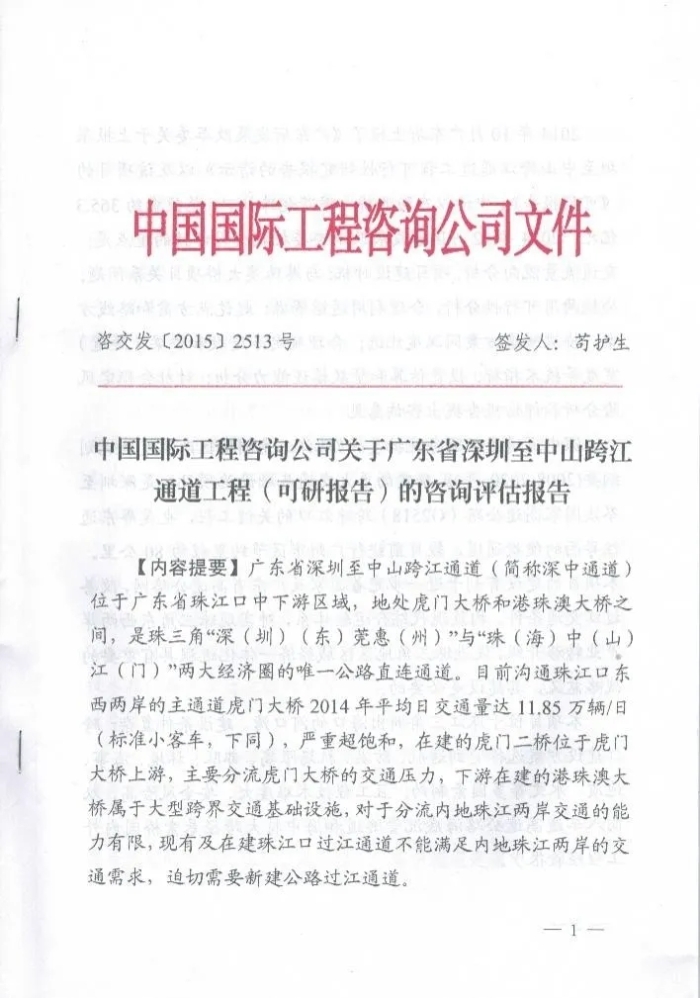 七年磨一劍,鏖戰(zhàn)珠江口。 飛架伶仃洋,天塹變通途。 6月30日,舉世矚目的國(guó)家重大工程深中通道正式建成通車。習(xí)近平總書(shū)記致信祝賀,并向參與規(guī)劃建設(shè)的全體同志致以誠(chéng)摯問(wèn)候。賀信中寫道:“深中通道是繼港珠澳大橋后粵港澳大灣區(qū)建成的又一超大型交通工程,攻克了多項(xiàng)世界級(jí)技術(shù)難題,創(chuàng)造了多項(xiàng)世界紀(jì)錄。全體參與者用辛勤付出、堅(jiān)強(qiáng)毅力,高質(zhì)量完成了工程任務(wù)。這充分說(shuō)明,中國(guó)式現(xiàn)代化是干出來(lái)的,偉大事業(yè)都成于實(shí)干!” 全長(zhǎng)約24公里,總投資446億元的深中通道在環(huán)珠江口“A”字形交通主骨架上挺起關(guān)鍵一“橫”,成為全球首個(gè)集“橋、島、隧、水下互通”為一體的跨海集群工程。通車后,深圳至中山的車程從2小時(shí)左右縮短至30分鐘。自此,深中兩地“雙向奔赴”,攜手進(jìn)入“一小時(shí)經(jīng)濟(jì)圈”,廣佛肇、深莞惠、珠中江三大珠三角都市圈聯(lián)結(jié)更加密切,推動(dòng)了粵港澳大灣區(qū)高質(zhì)量發(fā)展加速駛?cè)肟燔嚨馈?/span> 世界最大跨徑(1666米)全離岸海中鋼箱梁懸索橋、世界最高通航凈空高度(76.5米)、世界最大海中錨碇(100萬(wàn)噸)、世界橋梁最高顫振臨界風(fēng)速(88米/秒)……深中通道創(chuàng)造了十多項(xiàng)世界紀(jì)錄,形成了“鋼殼-混凝土沉管隧道設(shè)計(jì)方法”等10項(xiàng)世界領(lǐng)先技術(shù)。獲得發(fā)明專利200余項(xiàng)、行業(yè)協(xié)會(huì)獎(jiǎng)項(xiàng)數(shù)十項(xiàng),并屢獲國(guó)際贊譽(yù):2024年4月,深中大橋榮獲國(guó)際橋梁大會(huì)“喬治·理查德森獎(jiǎng)”,深中隧道入選“全球隧道與地下工程領(lǐng)域50項(xiàng)標(biāo)志性工程”。 這樣一項(xiàng)屢創(chuàng)紀(jì)錄、成于實(shí)干的超級(jí)工程背后,凝結(jié)著上百家參建單位、上萬(wàn)名建設(shè)者的汗水和智慧,中國(guó)國(guó)際工程咨詢有限公司(以下簡(jiǎn)稱“中咨公司”)便是其中一員。作為國(guó)家高端智庫(kù)和國(guó)內(nèi)規(guī)模最大的綜合性工程咨詢機(jī)構(gòu),中咨公司牢記“服務(wù)國(guó)家 貢獻(xiàn)社會(huì)”的初心使命,始終胸懷“國(guó)之大者”,助建“國(guó)之重器”,全程參與深中通道的建設(shè)論證,中咨人攻堅(jiān)克難,勇于擔(dān)當(dāng),敢于創(chuàng)新,用實(shí)際行動(dòng)詮釋了“公正、科學(xué)、可靠、敢言、多謀、慎斷”的中咨精神,為工程保駕護(hù)航,作出了重要貢獻(xiàn)。 使命召喚,責(zé)無(wú)旁貸 深中通道建設(shè)勢(shì)在必行 十年彈指一揮間,不負(fù)韶華不負(fù)己。2014年12月,受國(guó)家發(fā)展改革委委托,中咨公司開(kāi)展《深圳至中山跨江通道可行性研究報(bào)告》(以下簡(jiǎn)稱《可研報(bào)告》)的咨詢?cè)u(píng)估工作,評(píng)估重點(diǎn)包含以下方面:交通流量流向分析;項(xiàng)目建設(shè)時(shí)機(jī);與港珠澳大橋項(xiàng)目關(guān)系問(wèn)題;公鐵兩用可行性分析,合理利用通道資源;起訖點(diǎn)方案和路線方案;橋梁隧道方案同深度比選;合理確定車道數(shù)和橋梁(隧道)寬度等技術(shù)指標(biāo);投資估算和貸款償還能力分析;對(duì)社會(huì)穩(wěn)定風(fēng)險(xiǎn)分析和評(píng)估報(bào)告提出咨詢意見(jiàn)。 使命召喚,責(zé)無(wú)旁貸。中咨公司高度重視深中通道評(píng)估工作,迅速成立組建專班,由時(shí)任中咨公司副總經(jīng)理茍護(hù)生,原交通業(yè)務(wù)部主任佘湘耘,時(shí)任交通業(yè)務(wù)部主任助理姜青春,公路處處長(zhǎng)(項(xiàng)目經(jīng)理)宋小云、公路處申培華、徐進(jìn)、王春苗等,并邀請(qǐng)涵蓋隧道、橋梁、水運(yùn)、鐵路、公路、投資估算等方面專家,共同組成項(xiàng)目組,全力以赴做好評(píng)估論證工作。 2014年12月,中咨公司接受委托開(kāi)展評(píng)估論證工作。 2015年1月,中咨公司組織由工程院士、設(shè)計(jì)等組成的評(píng)估組,在深圳召開(kāi)現(xiàn)場(chǎng)咨詢?cè)u(píng)估會(huì),評(píng)估認(rèn)為本項(xiàng)目的通航安全影響行業(yè)主管部門尚未批復(fù),現(xiàn)有建設(shè)方案存在很大的不確定性,建議待有關(guān)通航等問(wèn)題明確后,確定工程方案。 2015年8月,交通運(yùn)輸部出具《關(guān)于深圳至中山跨江通道項(xiàng)目航道條件與通航安全影響評(píng)價(jià)的審核意見(jiàn)》(交水函〔2015〕590號(hào)),明確各航道通航凈空和相關(guān)技術(shù)要求。 2015年10月,《可研報(bào)告》編制單位根據(jù)中咨公司咨詢?cè)u(píng)估會(huì)意見(jiàn)和交通運(yùn)輸部關(guān)于通航影響的批復(fù)意見(jiàn),對(duì)交通量預(yù)測(cè)、通航審批執(zhí)行情況、工程實(shí)施范圍、投資估算及經(jīng)濟(jì)評(píng)價(jià)等內(nèi)容進(jìn)行了進(jìn)一步修改完善。 2015年11月,經(jīng)過(guò)評(píng)估組研究并進(jìn)行再次評(píng)估后,中咨公司關(guān)于廣東省深圳至中山跨江通道工程(可研報(bào)告)的咨詢?cè)u(píng)估報(bào)告正式提交國(guó)家發(fā)展改革委。 至此,歷時(shí)近一年的深中通道咨詢?cè)u(píng)估工作順利完成,評(píng)估組從建設(shè)必要性與建設(shè)時(shí)機(jī)、交通量預(yù)測(c