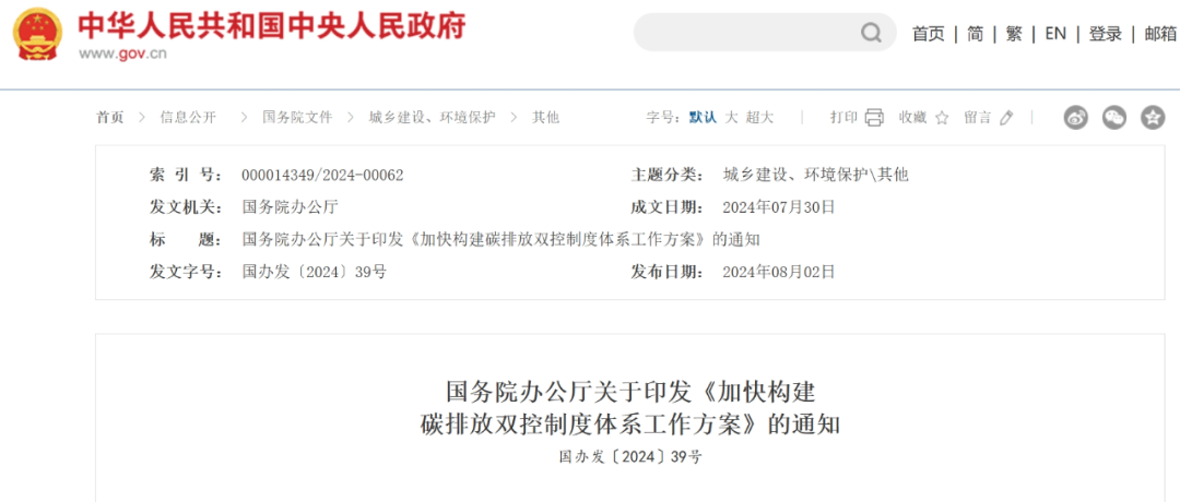 錨定減排目標 構筑制度體系 碳達峰碳中和工作邁入新階段 ——《加快構建碳排放雙控制度體系工作方案》專家解讀 張英健 木其堅 近日,國務院辦公廳印發了《加快構建碳排放雙控制度體系工作方案》(國辦發〔2024〕39號,以下簡稱《方案》)。《方案》貫徹落實黨的二十大和二十屆二中、三中全會精神,對構建碳排放雙控制度體系重點任務作出系統部署,對于建立能耗雙控向碳排放雙控全面轉型新機制、積極穩妥推進碳達峰碳中和、促進經濟社會發展全面綠色轉型具有重要意義。 一、碳排放雙控制度是實現碳達峰碳中和目標的關鍵一招 近年來,各地區、各部門堅持以習近平新時代中國特色社會主義思想為指導,深入貫徹落實習近平總書記關于碳達峰碳中和的重要論述和指示批示精神,推動“雙碳”工作取得良好開局和積極成效。黨中央、國務院印發《關于完整準確全面貫徹新發展理念做好碳達峰碳中和工作的意見》,國務院發布《2030年前碳達峰行動方案》,各有關部門出臺重點領域、重點行業實施方案和支撐保障方案,并系統部署了加快建立統一規范的碳排放統計核算體系、綠色低碳先進技術示范工程、產品碳足跡管理體系等一系列重大政策措施,碳達峰碳中和“1+N”政策體系構建完成,為碳達峰碳中和目標的實現奠定了堅實的制度基礎。 同時,我國碳達峰碳中和工作仍面臨嚴峻挑戰。受新冠疫情和國內外多重因素影響,“十四五”規劃《綱要》確定的節能降碳約束性指標完成情況不及預期。在“十四五”“十五五”交接的關鍵節點,《方案》首次全面完整闡述了碳排放雙控的制度架構,及時回答了碳排放雙控“是什么”和“怎么辦”的問題。《方案》的出臺,標志著能耗雙控向碳排放雙控全面轉型取得重大進展,為當前和今后一段時間的“雙碳”工作明確了工作主線、指明了前進方向、謀劃了路徑措施,對推進“雙碳”工作具有重大意義。 二、凝聚各方力量,筑牢碳排放雙控制度的四梁八柱 習近平總書記強調,“實現‘雙碳’目標是一場廣泛而深刻的變革,不是輕輕松松就能實現的”。面對紛繁復雜的國際國內形勢,面對新一輪科技革命和產業變革,更需要平衡好發展和減排、整體和局部、長遠目標和短期目標、政府和市場間的關系。《方案》立足當前實際,以建立健全地方碳考核、行業碳管控、企業碳管理、項目碳評價、產品碳足跡等政策制度和管理機制為重點,系統部署了六項重點任務。 在國家層面,將碳排放納入總體規劃。這是將碳達峰、碳中和目標任務全面融入經濟社會發展中長期規劃的必然要求。“十五五”時期,將碳排放強度降低作為國民經濟和社會發展約束性目標,合理確定五年規劃期碳排放目標,并對重點任務和重大工程進行統籌部署,開展碳排放總量核算。 在地方層面,建立碳排放目標評價考核制度。要實現“雙碳”目標,必須堅持全國一盤棋,而“指揮棒”就是區域的碳排放目標考核制度。在合理分解指標的基礎上,制定出臺碳達峰碳中和綜合評價考核辦法,統籌建立評價考核指標體系。推動省市兩級建立碳排放預算管理制度,強化對區域碳排放的管理和調控能力。 在重點行業層面,建立碳排放預警管控機制。電力、鋼鐵、有色、建材、石化、化工等工業行業和城鄉建設、交通運輸等領域是碳減排的重點。要合理劃定行業碳減排的范圍,摸清行業領域碳排放底數和減排潛力,常態化開展碳排放監測分析預警,并視情采取管控措施。 在企業層面,強化節能降碳管理制度。重點用能和碳排放單位是碳排放管理的“牛鼻子”。要制定出臺重點用能和碳排放單位節能降碳管理辦法,將碳排放管控要求納入現行重點用能單位管理制度。充分發揮市場機制調控作用,擴大全國碳排放權交易市場覆蓋范圍,探索配額有償分配機制;健全全國溫室氣體自愿減排交易市場,推動更大范圍減排;完善綠證交易市場,促進綠色電力消費。 在項目層面,開展固定資產投資項目碳排放評價。以重大項目為重點,結合碳預算制度,把好碳排放“入口關”。將碳排放評價有關要求納入固定資產投資項目節能審查,對項目用能和碳排放情況開展綜合評價,制定重點行業建設項目溫室氣體排放環境影響評價技術規范。 在產品層面,建立產品碳足跡管理體系。碳足跡管理是連接國際與國內、政府與企業的重要發力點。要加快制定產品碳足跡規則標準,按照急用先行原則制定一批碳足跡核算規則標準。加強碳足跡背景數據庫建設,建立定期更新發布機制。加快建立產品碳標識認證制度。 《方案》部署的6項任務涵蓋了碳排放雙控制度涉及的重點領域和關鍵環節,為下一階段各地方、各部門推進碳排放雙控工作指明了方向。 三、以時不我待的精神下好碳排放雙控制度建設“先手棋” 《方案》明確,“十五五”時期我國將實施以強度控制為主、總量控制為輔的碳排放雙控制度,但這并不意味著《方案》要到“十五五”期間才正式生效。事實上,根據《方案》的工作安排,到2025年底,實施碳排放雙控制度的各項基礎工作必須全面完成,今明兩年各方面的工作任務十分艱巨。對各地區而言,要加緊建設滿足碳排放雙控管理要求的統計制度、建立省市兩級碳排放預算管理制度,提前謀劃固定資產投資項目碳排放評價制度等;對于各部門而言,碳達峰碳中和綜合評價考核