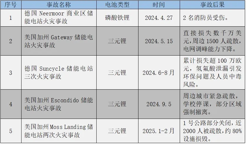 我國電化學儲能電站 安全風險分析及管控建議 嚴超 黃文 摘要:電化學儲能電站是我國建設新型電力系統、實現碳達峰碳中和的重要支撐。然而,其存在火災甚至爆炸的風險。全球范圍內電化學儲能電站火災事故頻發,這警示我國需科學管控電化學儲能電站的安全風險。本文介紹電化學儲能電站的安全難題,分析我國電化學儲能電站存在的安全風險,進一步探討其安全風險管控過程中面臨的困難與挑戰,提出科學管控安全風險的對策建議,旨在更好地保障我國電化學儲能電站的安全,推動新型電力系統建設以及碳達峰碳中和目標的實現。 電化學儲能包括鋰離子、鉛酸(碳)、液流、鈉硫等不同類型的電池技術,當前主要以磷酸鐵鋰和三元鋰電池為主。電化學儲能電站由數萬至數十萬個電池組成,具有布局靈活、響應速度快、調節精度高等優勢,在我國建設新型電力系統、實現碳達峰碳中和目標的進程中發揮著重要支撐作用。根據國家能源局發布數據,截至2024年底,我國新型儲能裝機累計達到7376萬kW,較2023年底增長超過130%,其中95%以上為鋰離子電池儲能,我國電化學儲能已進入規模化發展階段。 磷酸鐵鋰和三元鋰電池本身存在一定的熱失控概率,這種熱失控可能導致電化學儲能電站發生火災甚至爆炸,但磷酸鐵鋰相較三元鋰的安全性更好。全球范圍內,電化學儲能電站火災事故屢見不鮮,不僅對公共安全構成嚴重威脅,還可能影響碳達峰碳中和目標的實現進程。這些事故警示我國在新型儲能規?;l展過程中,必須科學謀劃并有效管控電化學儲能電站的安全風險,以確保新型電力系統建設和碳達峰碳中和目標的安全有序推進。 本文從事故概率和事故影響兩個方面介紹電化學儲能電站的安全難題,在此基礎上,結合我國電化學儲能電站發展實際情況,分析其面臨的“基數增加”和“老舊隱患”風險,探討我國電化學儲能電站安全風險管控在設計規范、監測預警和消防策略方面面臨的挑戰,從加快本征安全研究、加強規范制定、升級監測預警和完善消防策略等方面提出對策建議。 一、電化學儲能電站安全難題介紹 (一)電化學儲能電站事故概率 電化學儲能電池在過充、過放、環流、內部短路、電氣故障、機械碰撞等多種故障情況下,電芯溫度容易升高,進而引發熱失控,最終導致火災。電芯燃燒時會釋放出可燃和有毒氣體,可能導致爆炸[1]。大型儲能電站(100兆瓦以上)通常由數十萬至百萬個電芯組成,這使得電芯出現故障的概率大幅增加。目前,全球范圍內已發生多起電化學儲能電站火災事故,主要集中在韓國和美國,中國、澳大利亞、德國、法國等地也有此類事故發生。目前單體電池的火災概率約在10-3量級,根據孫金華院士2022年的統計,全球每座儲能電站每年發生火災的概率約在2×10-3~3×10-3。截至2024年底,我國已投運的電化學儲能電站達1473座[2],按照這個數據估算,每年約有2~5座電化學儲能電站可能發生火災事故。表1統計了我國近2年公開記錄的主要電化學儲能電站事故,考慮到部分事故可能未被公開,事故統計數據可能較真實情況有所低估。 表1 近2年我國主要公開電化學儲能電站火災事故 (二)電化學儲能電站事故影響 在全球范圍內,早期曾發生多起造成人員傷亡的嚴重電化學儲能電站燃爆事故(見表2),這些事故引發了人們對公共安全的高度重視。其中,2021年我國北京集美大紅門儲能電站發生爆炸事故,造成2名消防員死亡;2024年韓國京畿道電池廠火災引發爆炸事故,導致23人死亡。在電化學儲能火災處置不當的情況下,極易發生燃爆,從而引發大規模事故。2024年以來,全球范圍內電化學儲能電站火災事故持續不斷(見表3)。例如,2024年5月美國加利福尼亞州Gateway儲能電站(250兆瓦/250兆瓦時)發生火災事故,電站多次復燃,火災持續約11天,釋放出的大量有毒有害氣體造成嚴重空氣污染,迫使周邊地區1500多名居民緊急疏散撤離,滅火時產生的大量水漬會造成環境污染。電站設備及建筑物損毀造成數千萬美元經濟損失,儲能設施停運使電網調峰能力下降,引發當地社區對電化學儲能電站部署的強烈反對,火災發生后圣迭戈縣明確禁止在住宅區部署儲能設施。 表2 全球范圍造成人員傷亡的主要電化學儲能電站事故 表3 2024年以來全球主要電化學儲能電站火災事故 二、我國電化學儲能電站安全風險分析 根據工程風險評估理論[3],電化學儲能電站的安全風險是電站數量、事故概率和事故影響三者的乘積。其中,事故概率受電池本體質量、集成設計、氣象條件等多種因素制約,事故影響涵蓋人身安全、環境污染、財物損失等多方面。 (一)“基數增加”風險 截至2024年,全國投運新型儲能總裝機達到7376萬千瓦/1.68億千瓦時,約為“十三五”末期的20倍,且95%以上為電化學儲能。然而,其僅占全國電源總裝機的2.20%,占新能源總裝機的5.23%,與新型電力系統調節能力建設的需求相比,差距較大,增長潛力巨大[4]。據中關村儲能產業聯盟估計,到2030年全國電化學儲能裝機將超過2億千瓦[5]。隨著電站基數的增大,安全風險也隨之增加。另一方面,2024年國內儲能系統(2小時)中標均價相較2023年下降了43%。雖然價格并不絕對等同于質量,但在強制安全設計規范和安全追責機制仍在完善,且行業內卷導致企業面臨較大經營壓力的情況下,部分企業可能會通過降低設計標準和部分零件質量來減少成本,這將