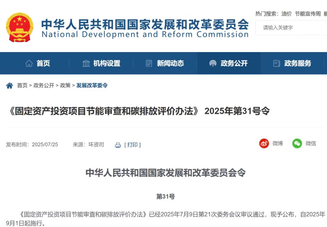 加強固定資產投資項目能源消費和碳排放管理 有力支撐節能降碳工作取得新的更大成效 張英健 論立勇 加強固定資產投資項目節能審查和碳排放評價是有力有效遏制“兩高”項目盲目上馬、推動綠色低碳高質量發展的一項重要舉措。近日,國家發展改革委頒布《固定資產投資項目節能審查和碳排放評價辦法》(國家發展和改革委員會令2025年第31號,以下簡稱《辦法》),這是適應新形勢新任務新要求、扎實做好節能降碳工作的重要制度安排,對建立能耗雙控向碳排放雙控全面轉型新機制、積極穩妥推進碳達峰碳中和具有重要意義。 01 節能審查工作邁入新階段 新上固定資產投資項目作為全社會能源消費增長的主要驅動因素之一,是推動節能降碳工作的重要“戰場”。自2010年節能審查制度建立實施以來,這項制度在提高新上項目能源利用效率、從源頭減少不合理能源消費和碳排放、推動產業結構優化升級、推廣先進節能降碳工藝技術裝備等方面都發揮了重要作用。 作為全球最大的發展中國家,未來一個時期,我國能源消費和碳排放還將保持增長態勢,實現碳達峰目標時間窗口緊、任務重,需要付出艱苦努力。今年是“十四五”收官和“十五五”謀劃的關鍵節點,面對新形勢新任務新要求,《辦法》將項目碳排放評價納入節能審查制度,上收重點領域重大項目節能審查權限,細化節能審查事中事后監管要求,進一步健全相關規定、補齊制度短板,及時明確了新形勢下節能審查工作“怎么干”的問題,對更好加強節能審查和碳排放評價源頭把關、推動節能降碳工作邁上新臺階具有重要意義。 02 細化明確碳排放評價工作要求 2023年3月修訂發布的《固定資產投資項目節能審查辦法》(國家發展和改革委員會令2023年第2號)要求具備碳排放統計核算條件的項目,應在節能報告中增加碳排放有關情況及對所在地區完成降碳目標任務的影響等內容。在此基礎上,《辦法》按照《加快構建碳排放雙控制度體系工作方案》(國辦發〔2024〕39號)中“將碳排放評價有關要求納入固定資產投資項目節能審查,對項目用能和碳排放情況開展綜合評價”等要求,進一步強化項目能源消費和碳排放管理工作導向,加強節能審查制度與碳排放雙控制度體系的有效銜接。 《辦法》要求將碳排放總量、碳排放結構、單位產品碳排放、單位增加值(產值)碳排放等指標,以及相關指標與標準、行業先進水平的比較等情況納入節能報告。同時,進一步明確碳排放評價具體工作要求,一方面將項目上馬對碳排放形勢和碳排放強度降低目標完成的影響,以及單位產品和產值碳排放是否符合國家與行業標準、碳排放數據核算及分析論證是否準確等作為審查評價重點內容;另一方面,明確國家發展改革委實施節能審查的項目需同步開展碳排放評價,并要求地方節能審查機關結合本地區實際對碳排放量大且可能對碳達峰形勢、碳排放強度降低目標完成等產生不利影響的項目開展碳排放評價。相關規定為開展項目碳排放評價提供了具體指導,有利于在源頭和入口形成有效的碳排放控制閥門。 03 優化節能審查管理權限 近年來,從地方實踐看,節能審查制度在實際執行過程中還存在審查權限層層下放、審查質量不高等問題。《辦法》堅持問題導向,加強制度創新,進一步優化節能審查管理權限,完善分級分類管理要求。在國家層面,建立節能審查權限動態調整機制,國家發展改革委統籌考慮節能降碳形勢、行業發展情況等因素,對重點領域年綜合能源消費量50萬噸標準煤及以上(或年煤炭消費量50萬噸及以上)項目實施節能審查;在地方層面,省級節能審查機關負責對年綜合能源消費量1萬噸標準煤及以上(或年煤炭消費量1萬噸及以上)項目實施節能審查,要求及時調整或暫停節能降碳相關指標進展滯后、專業力量不足、審查質量偏低省級以下地區節能審查權限,并禁止將高耗能高排放項目節能審查權限下放至縣級節能審查機關。相關規定有利于形成上下聯動、職責清晰、高效協同的節能審查工作格局,將對有效提高節能審查工作效能提供重要保障。 04 強化項目節能審查事中事后監管 節能審查意見是項目開工建設、竣工驗收和運營管理的重要依據。為督促指導項目建設單位嚴格落實節能審查意見,加強節能審查事中事后監管,《辦法》要求在開工建設前或建設過程中發生重大變動的項目應進行節能審查變更,并細化節能審查驗收時間節點、驗收內容、驗收管理權限等要求,明確將地方節能審查實施情況作為節能監察和節能降碳相關評價考核的重要內容。在此基礎上,《辦法》明確了未批先建、未落實節能審查意見等違法違規行為的具體處罰規定,進一步強化節能審查全流程閉環管理,有利于打通制度執行的“最后一公里”,確保節能審查意見落到實處。 總的看,《辦法》相關制度設計不斷優化完善和創新發展,是對既有工作的延續和深化,能夠更好適應節能降碳工作面臨的新形勢新要求。我們相信,《辦法》將能夠有效指導各相關方面切實做好新形勢下的節能審查和碳排放評價工作,為建立能耗雙控向碳排放雙控全面轉型新機制、更高水平更高質量做好節能降碳工作提供有力保障。 注:原文載自國家發展改革委微信客戶端。 | |||||