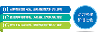 在國(guó)家全面建設(shè)小康社會(huì)的進(jìn)程中積極貢獻(xiàn)我們的力量,在國(guó)家經(jīng)濟(jì)社會(huì)發(fā)展戰(zhàn)略的制定和實(shí)施中不斷奉獻(xiàn)我們的智慧,在國(guó)家投資決策上努力提供科學(xué)的依據(jù),以凝聚思想、優(yōu)質(zhì)高效的咨詢(xún)成果助力社會(huì)民生事業(yè),用心做好服務(wù),爭(zhēng)做工程咨詢(xún)行業(yè)的優(yōu)秀企業(yè)公民。 |